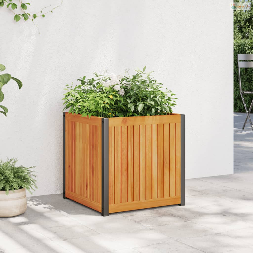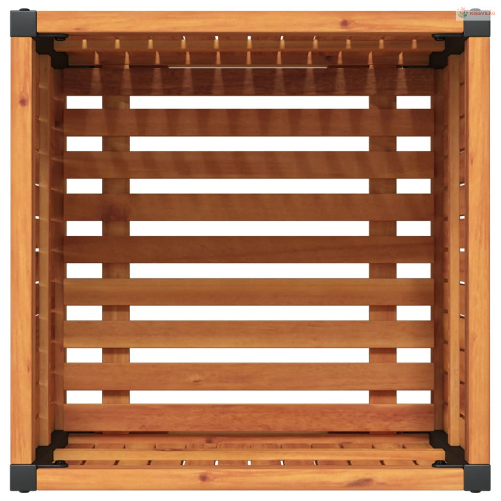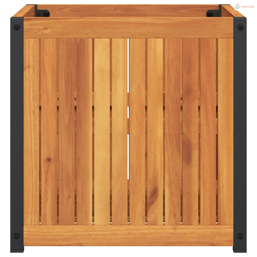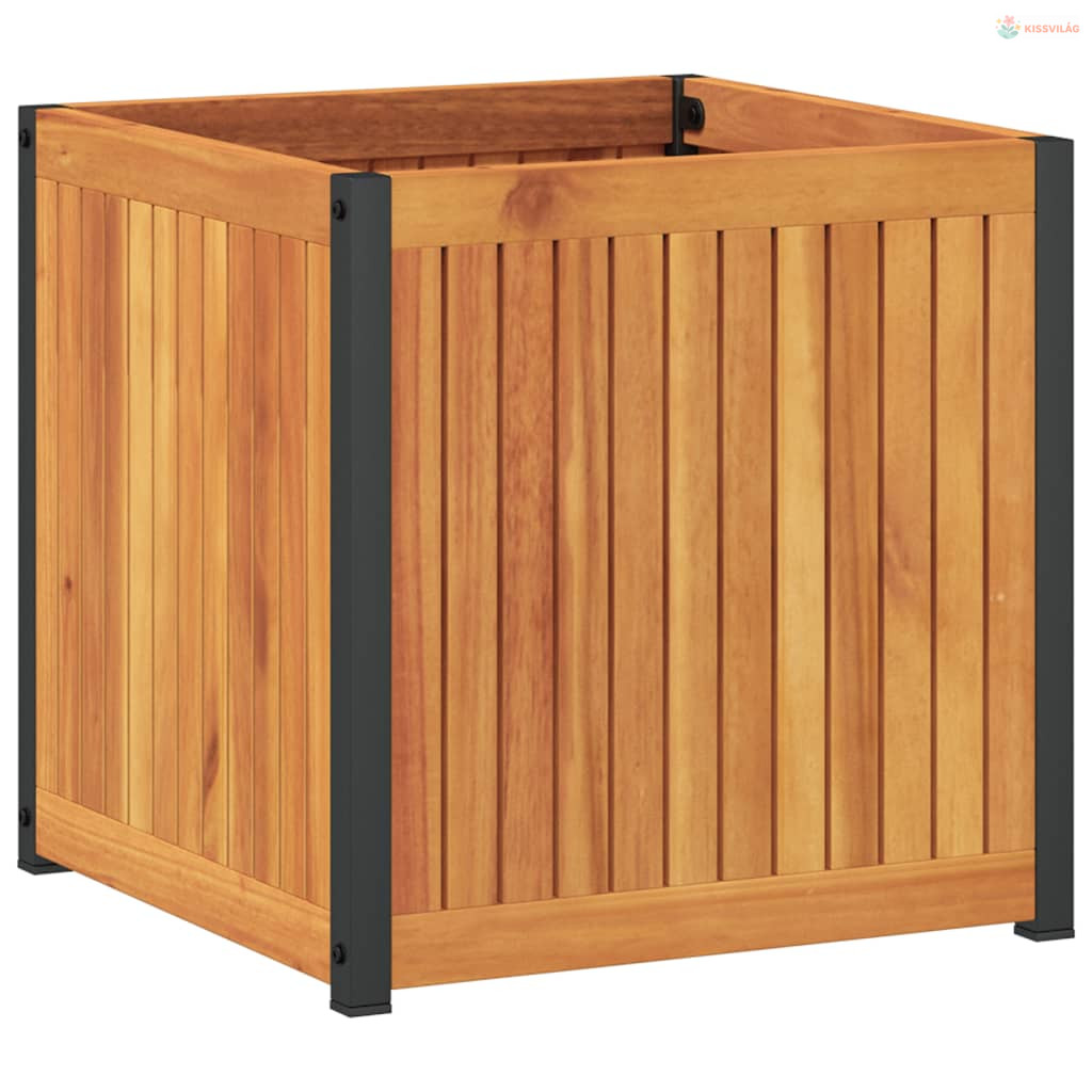 Tömör akácfa és acél kerti virágtartó 45 x 45 x 44 cm
