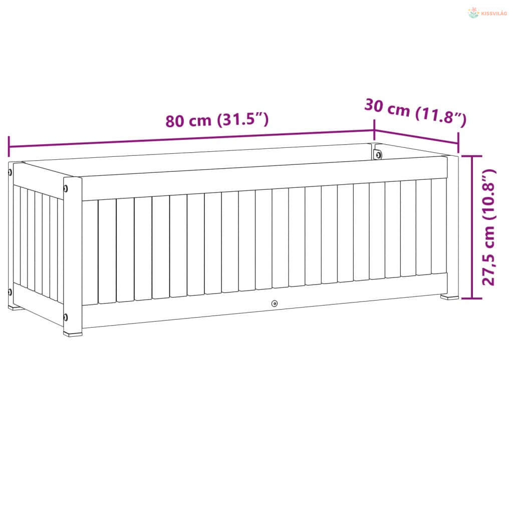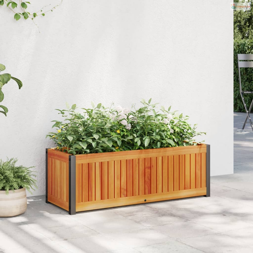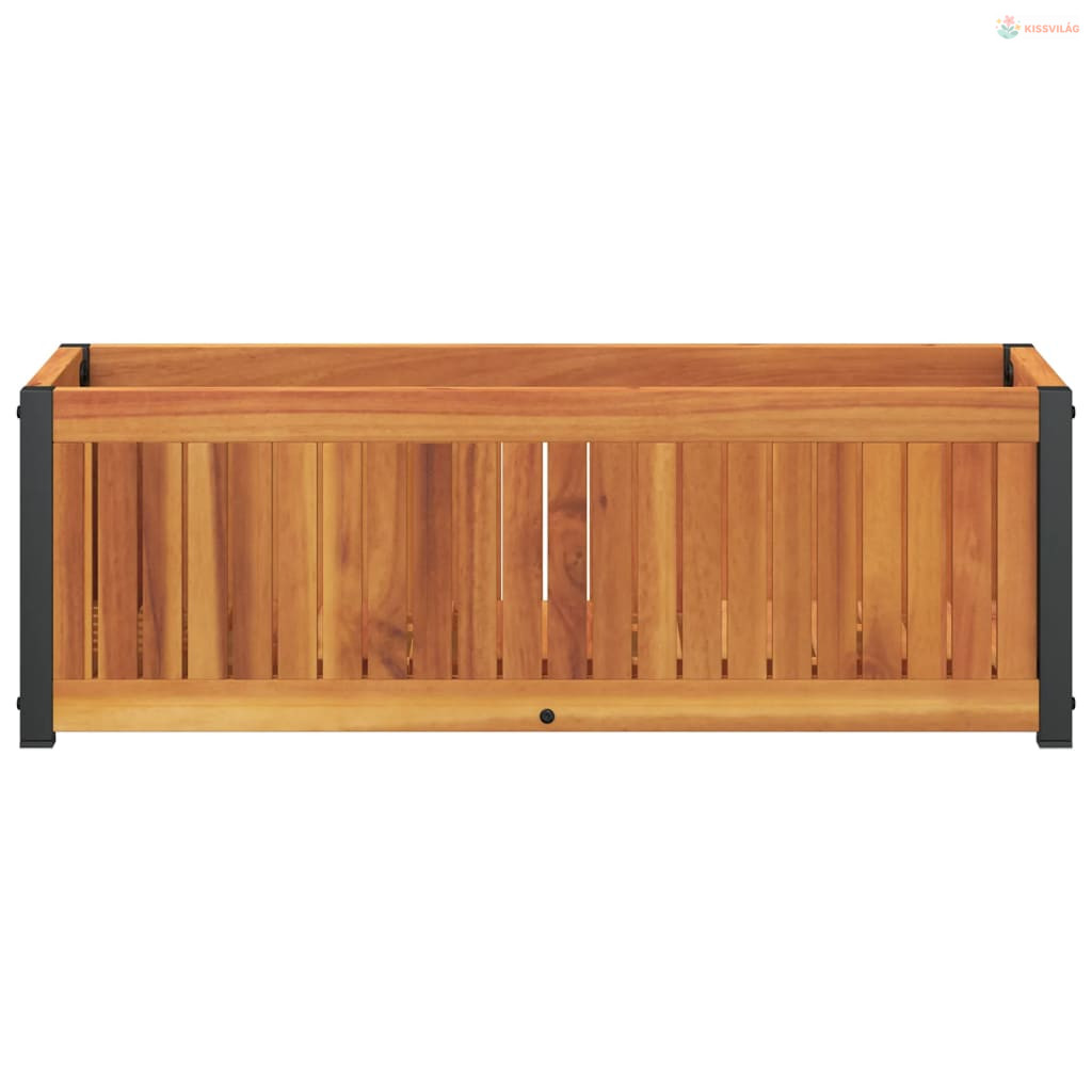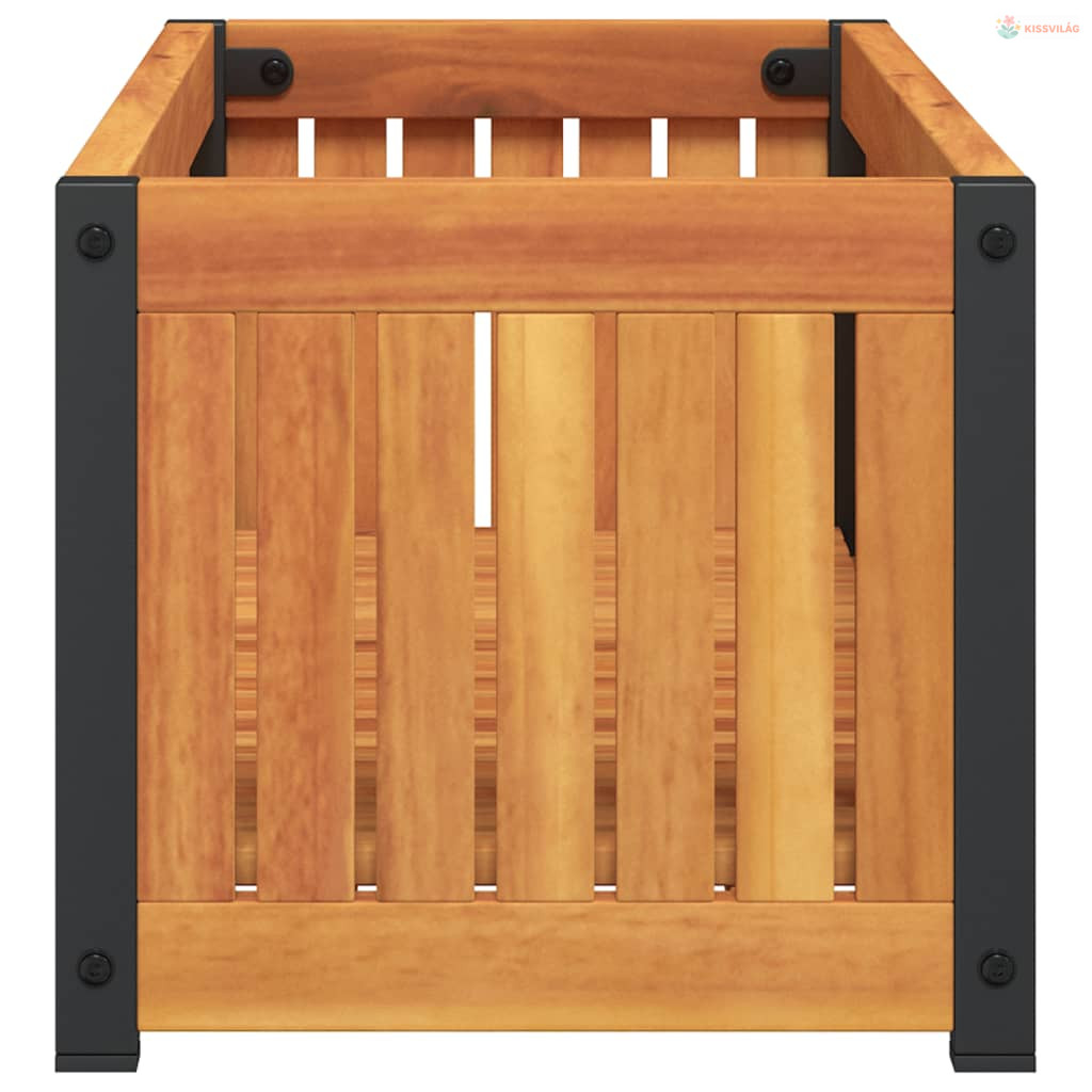 Tömör akácfa és acél kerti virágtartó 80 x 30 x 27,5 cm