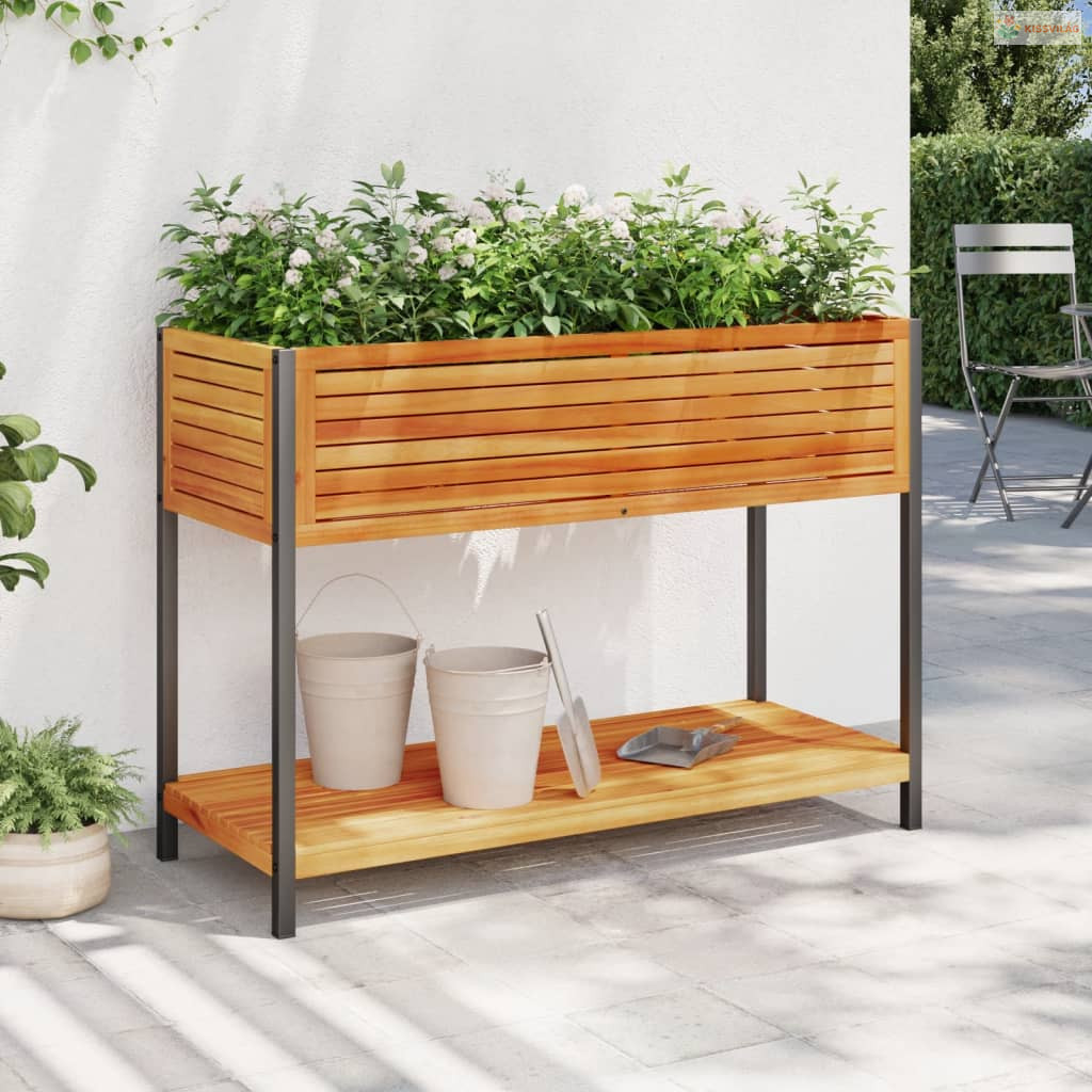 Tömör akácfa és acél kerti virágtartó polccal 110 x 45 x 80 cm