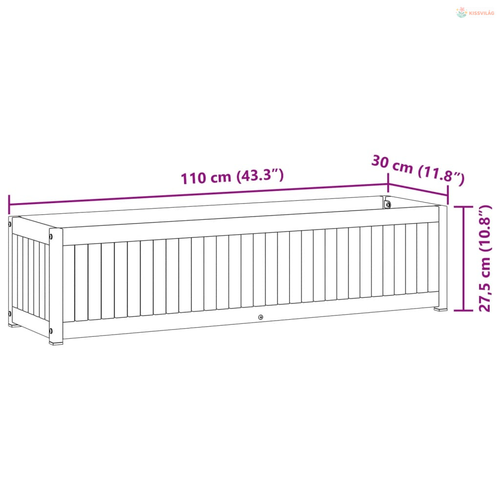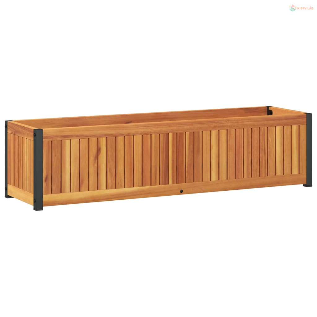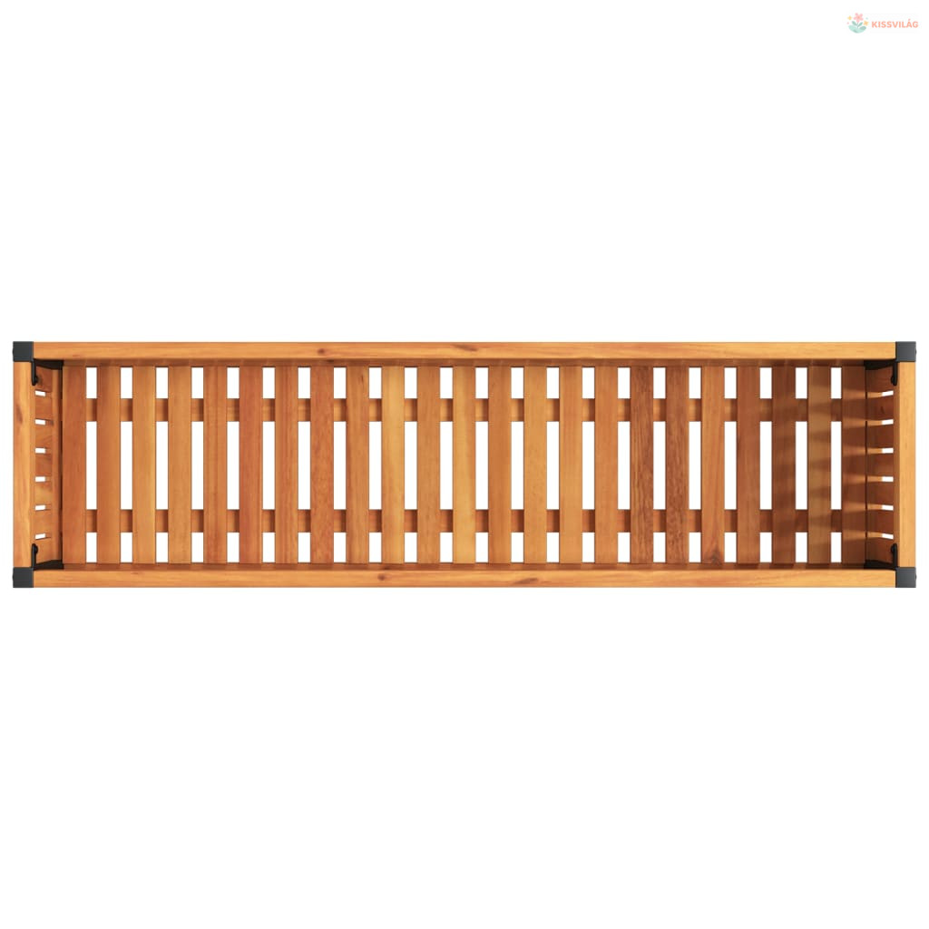 Tömör akácfa és acélkerti virágtartó 110 x 30 x 27,5 cm