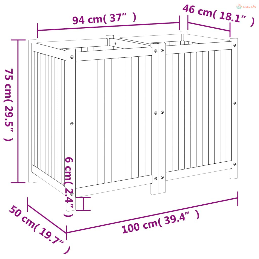 • Praktikus kialakítás: Az alsó fa lécek lehetővé teszik a könnyű vízelvezetést és megakadályozzák a gyökerek korhadását.