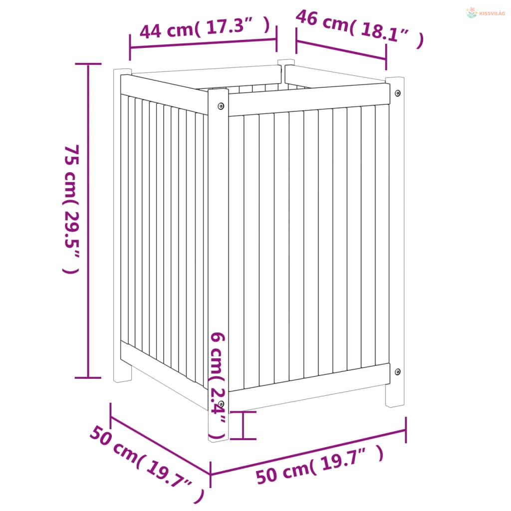 Tömör akácfa kerti virágtartó béléssel 50 x 50 x 75 cm