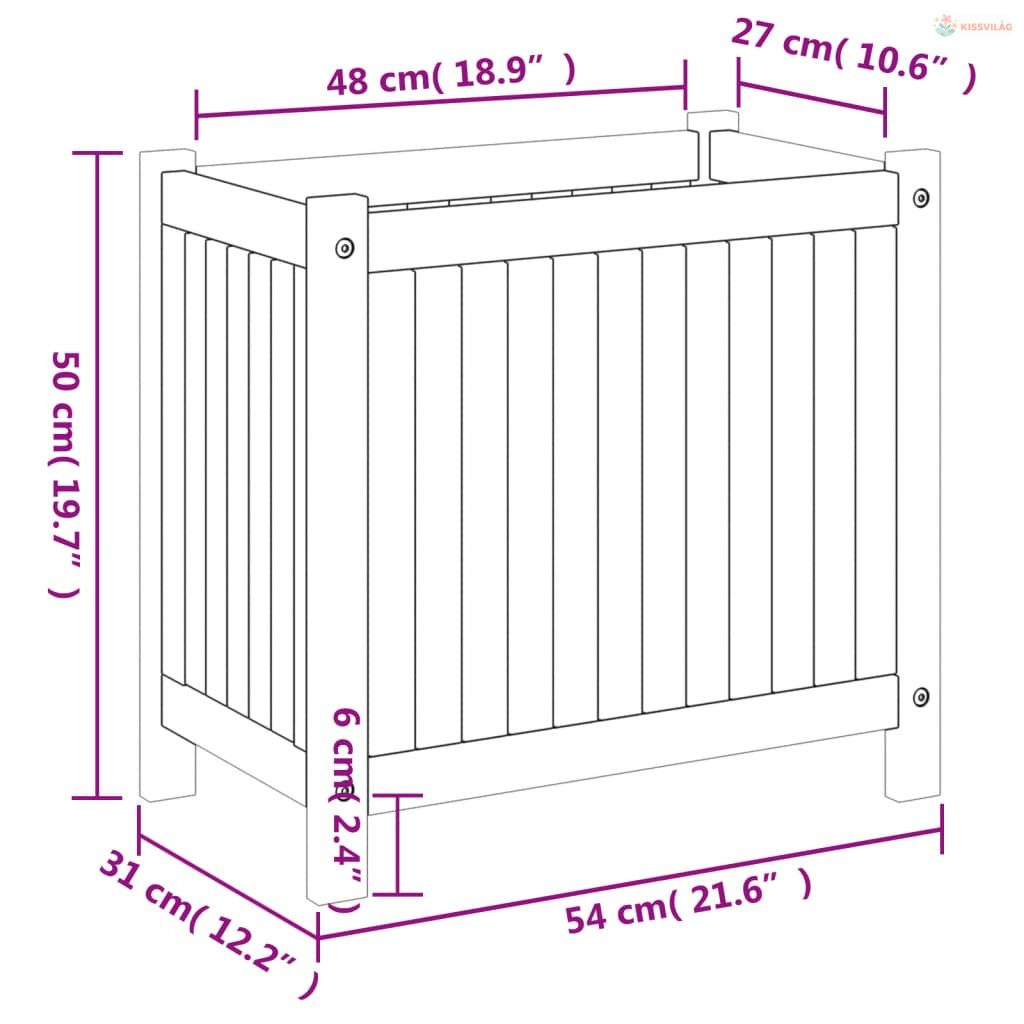 Tömör akácfa kerti virágtartó béléssel 54 x 31 x 50 cm
