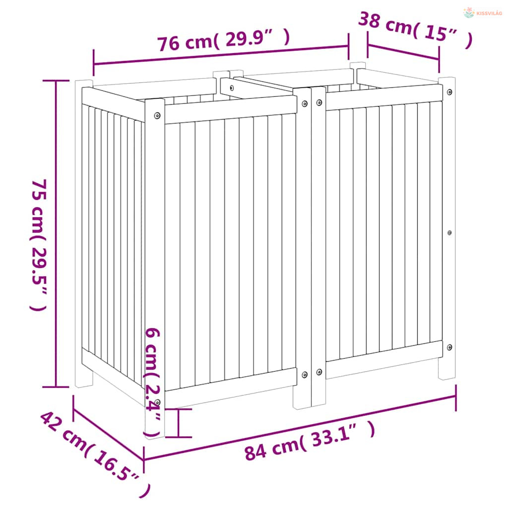 Tömör akácfa kerti virágtartó béléssel 84 x 42 x 75 cm