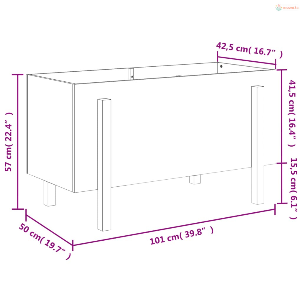 • Dekoratív funkció: A magaságyás ládába elhelyezheti kedvenc növényeit vagy virágait, így ideális dekoráció a kertbe.