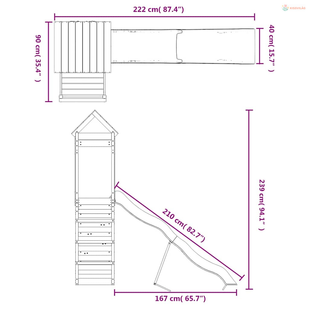 • Erős és stabil váz: A játszószett fa váza erős szerkezetet és stabilitást biztosít.