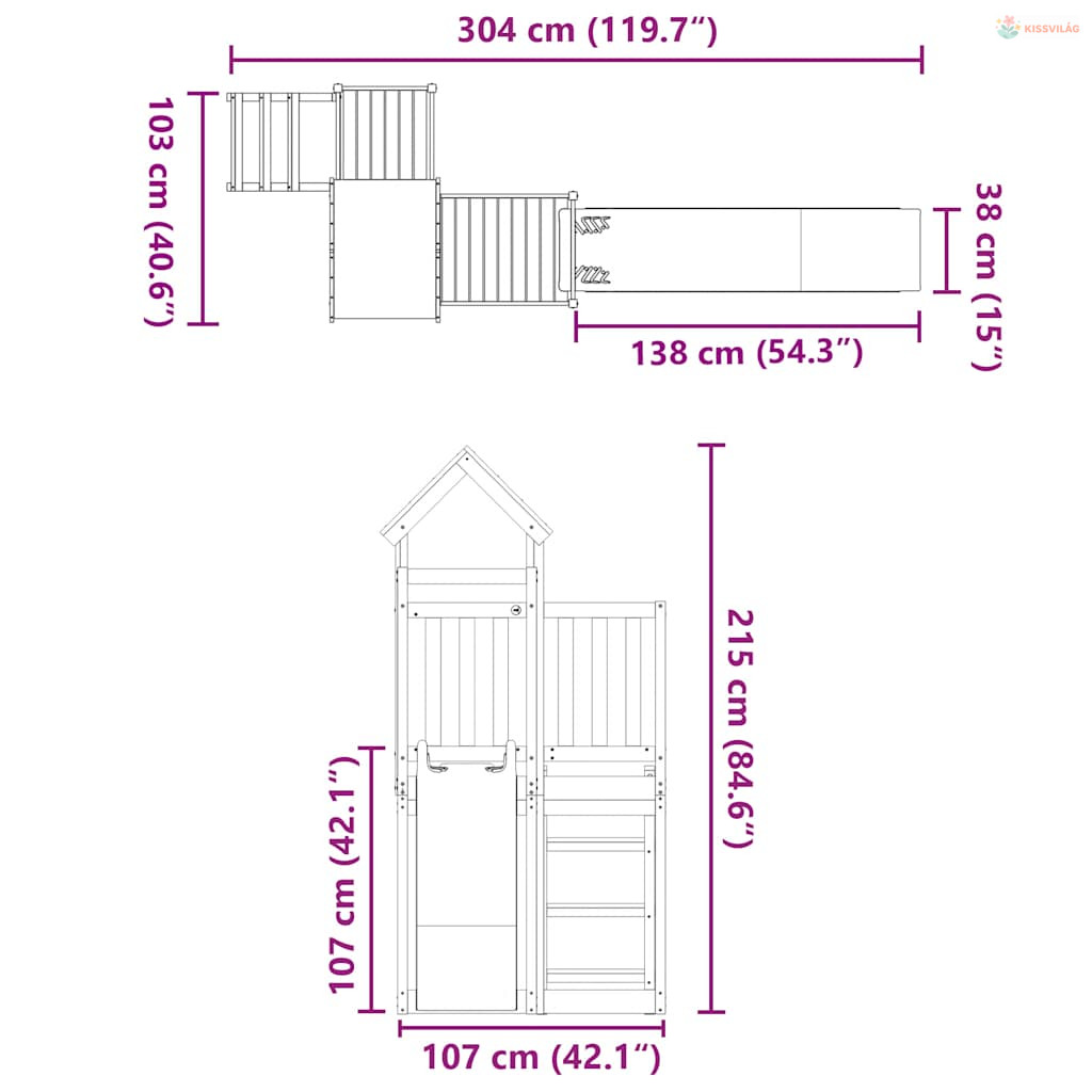 • Játszótorony anyaga: tömör duglászfenyő (kezeletlen)