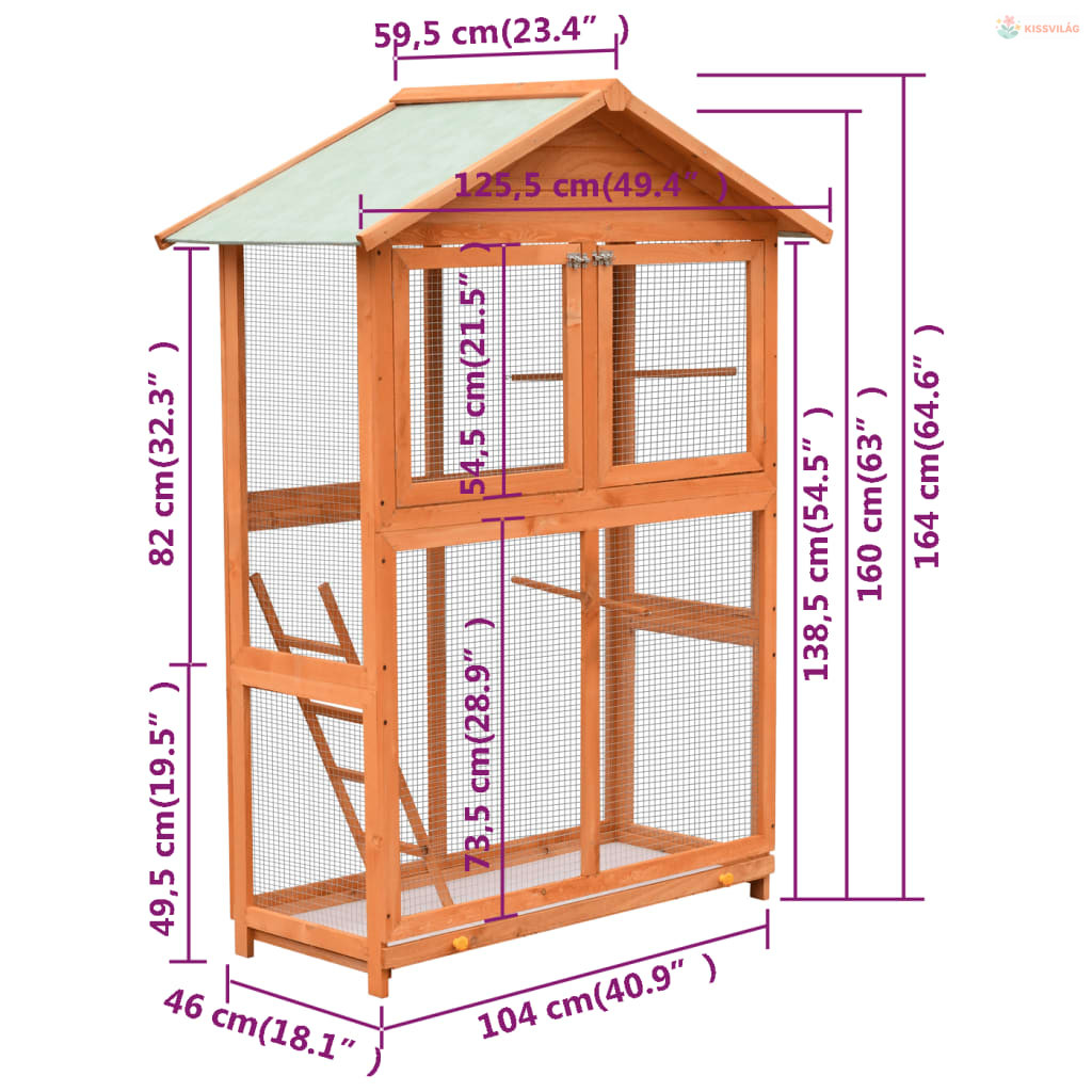 Tömör fenyő- és jegenyefa madárkalitka 125,5 x 59,5 x 164 cm