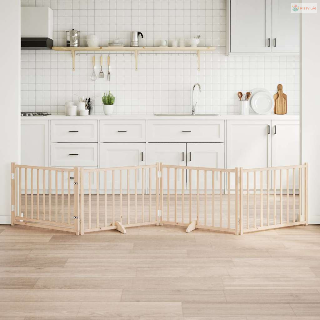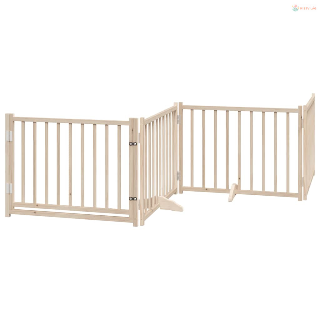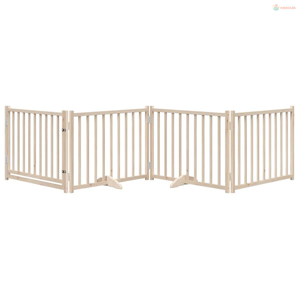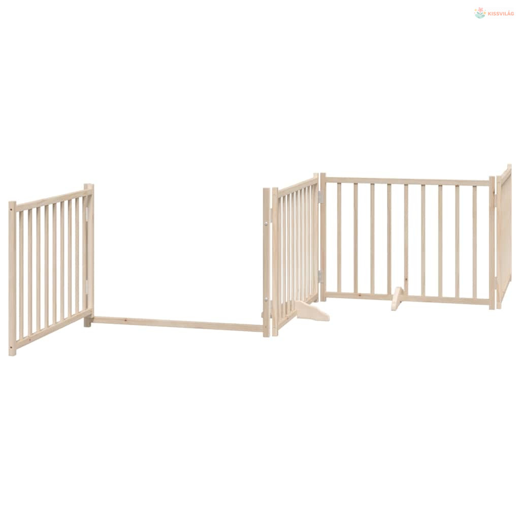 Tömör fenyőfa 4 paneles összecsukható kutyakapu ajtóval 320 cm