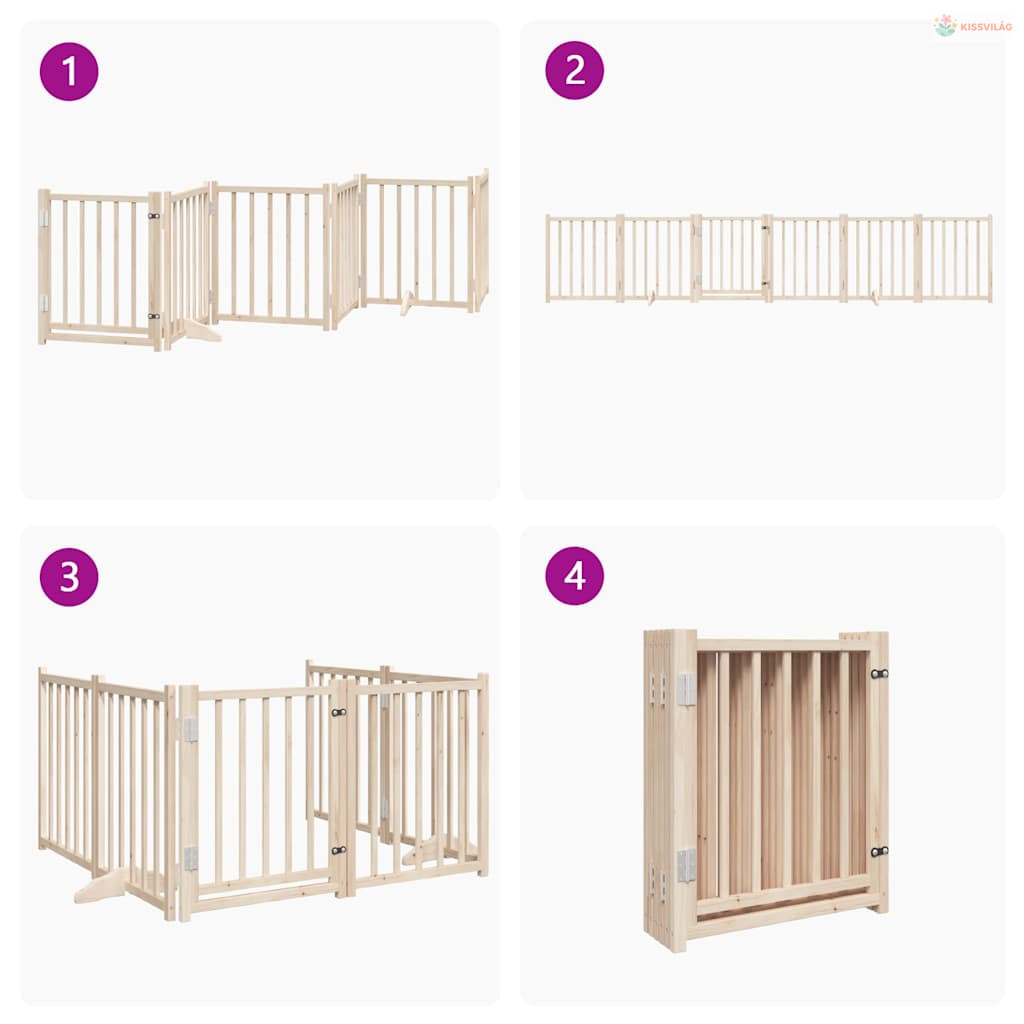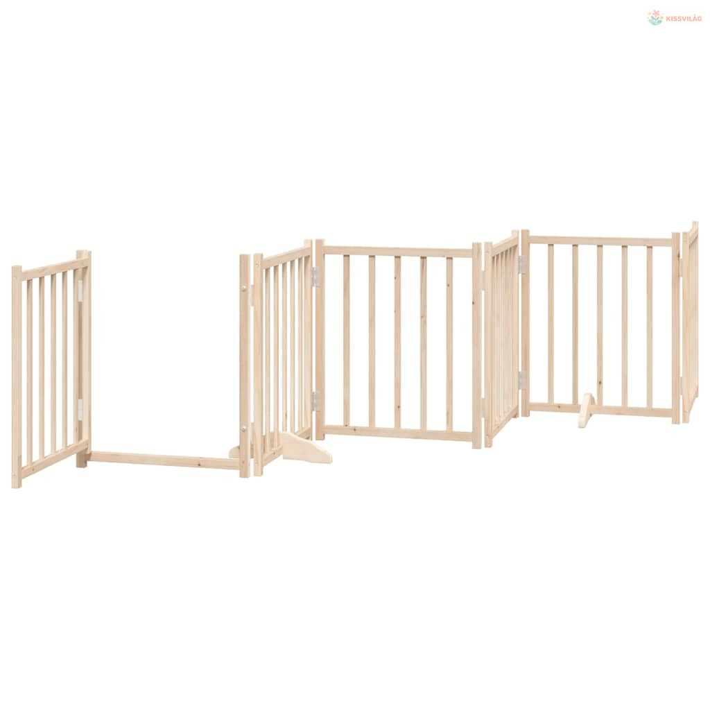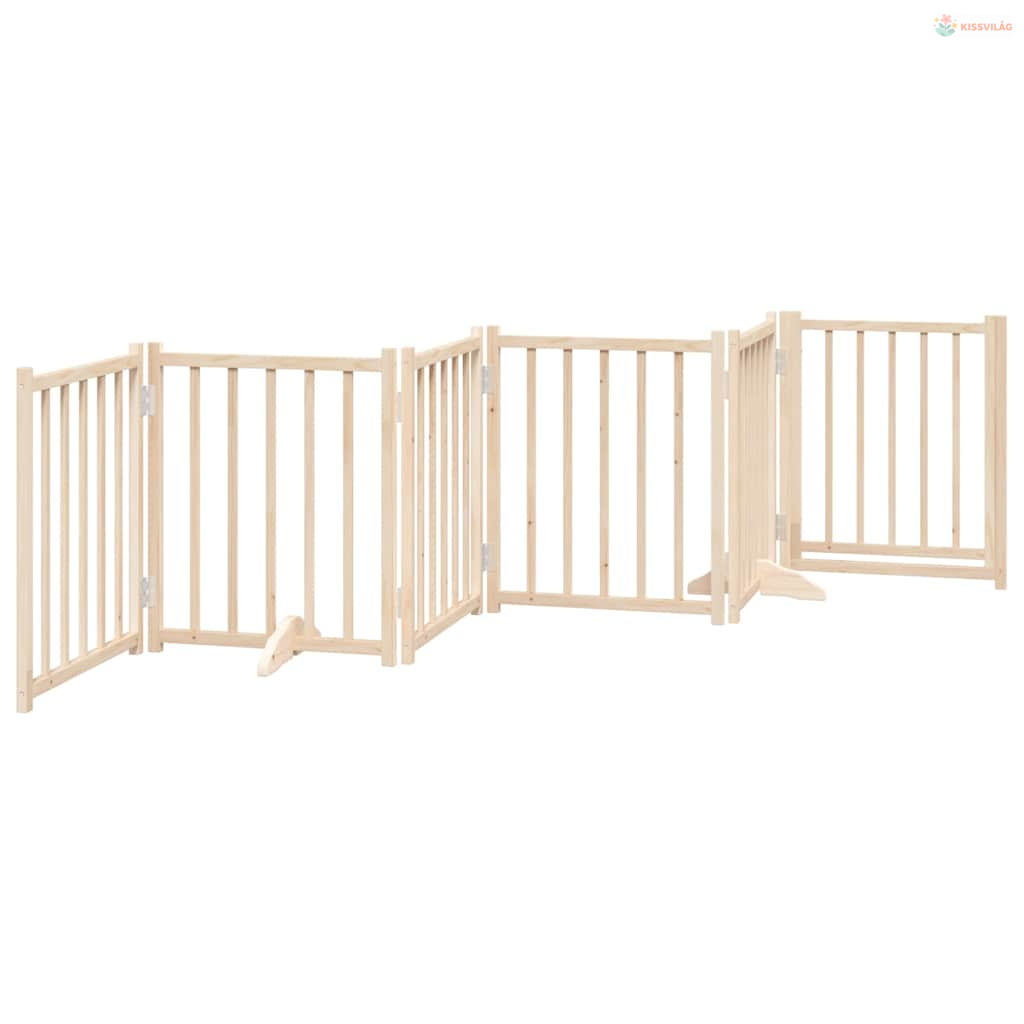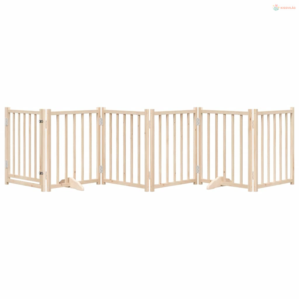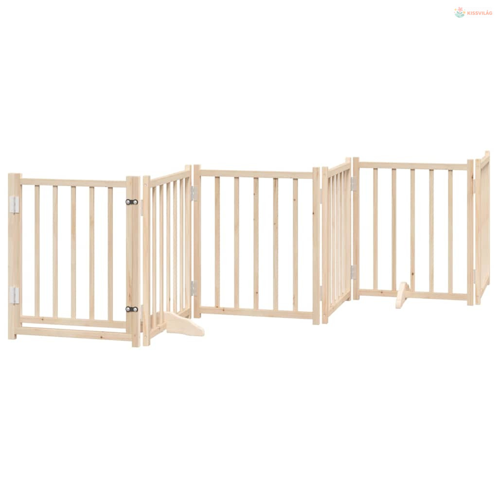 Tömör fenyőfa 6 paneles összecsukható kutyakapu ajtóval 300 cm