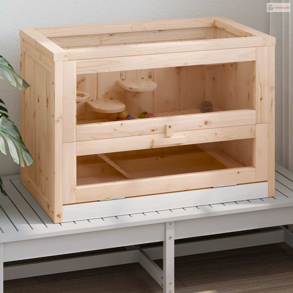 Tömör fenyőfa hörcsögketrec 60x35,5x42 cm
