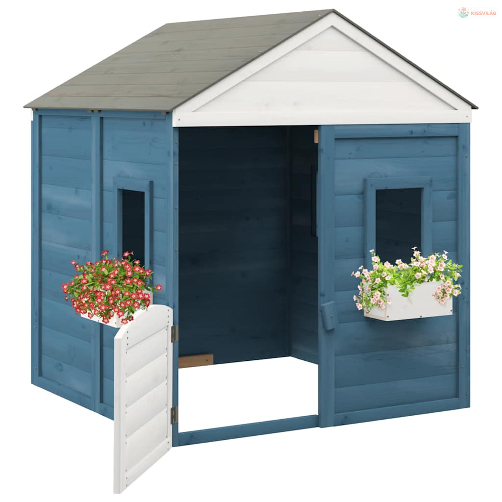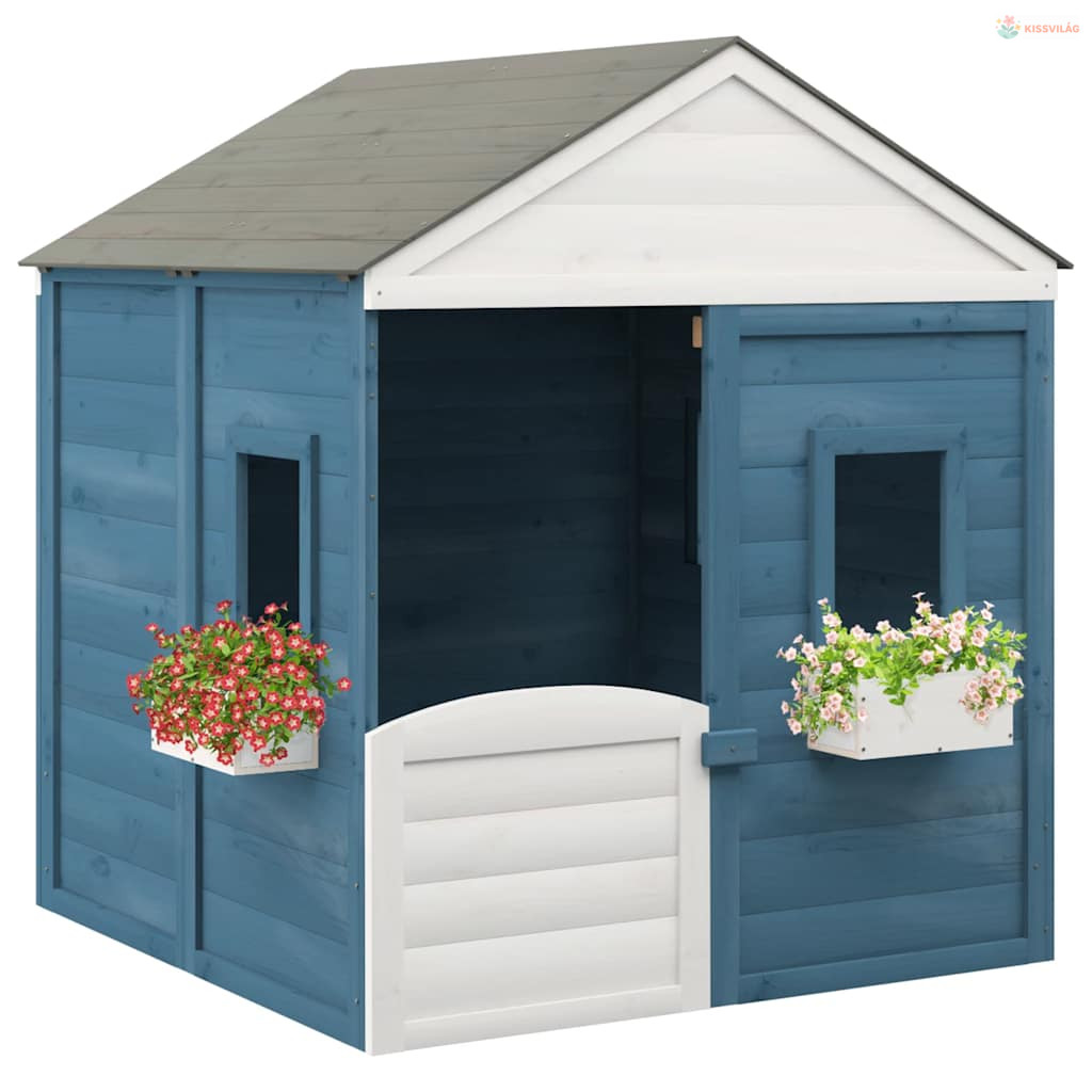 Tömör fenyőfa játszóház zárható ajtóval és virágcserepekkel
