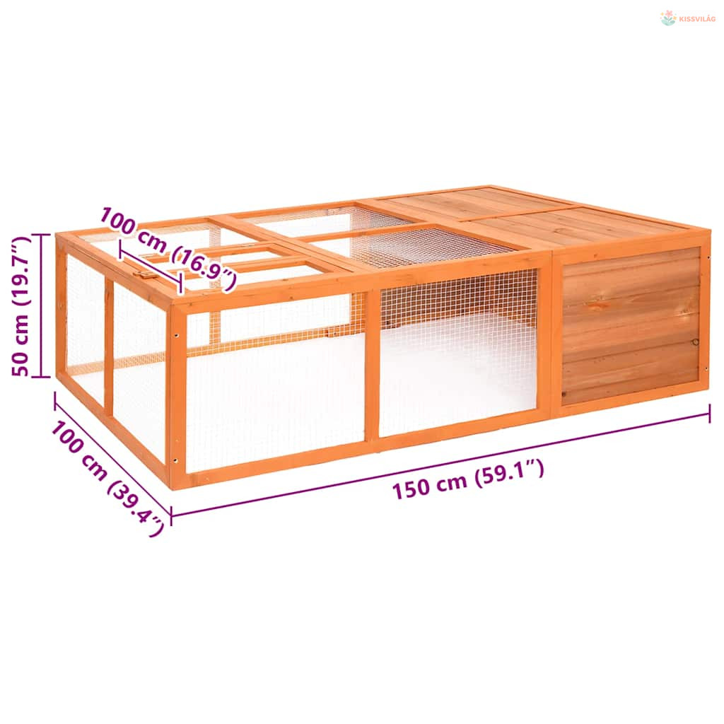 Tömör fenyőfa kerti állatketrec 150 x 100 x 50 cm