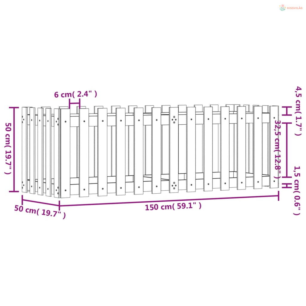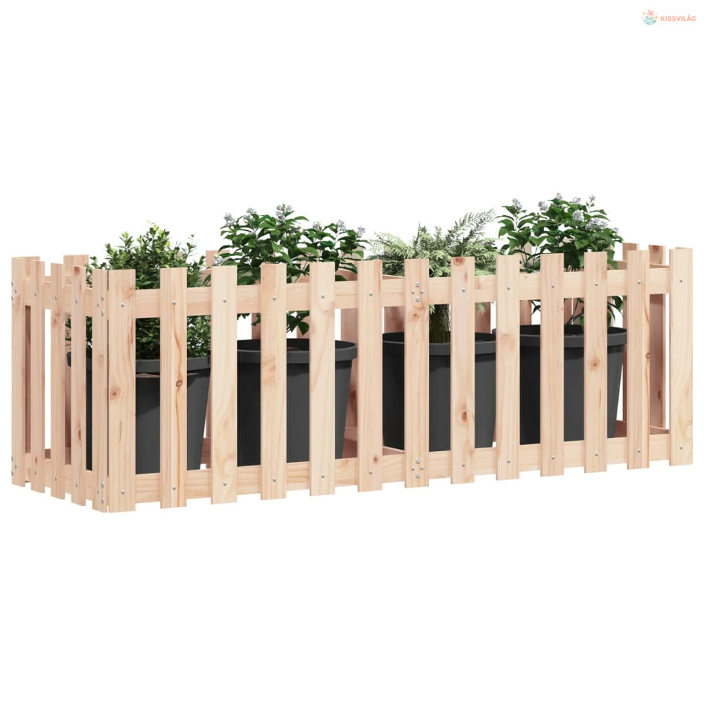 Tömör fenyőfa kerti magaságyás kerítéssel 150x50x50 cm