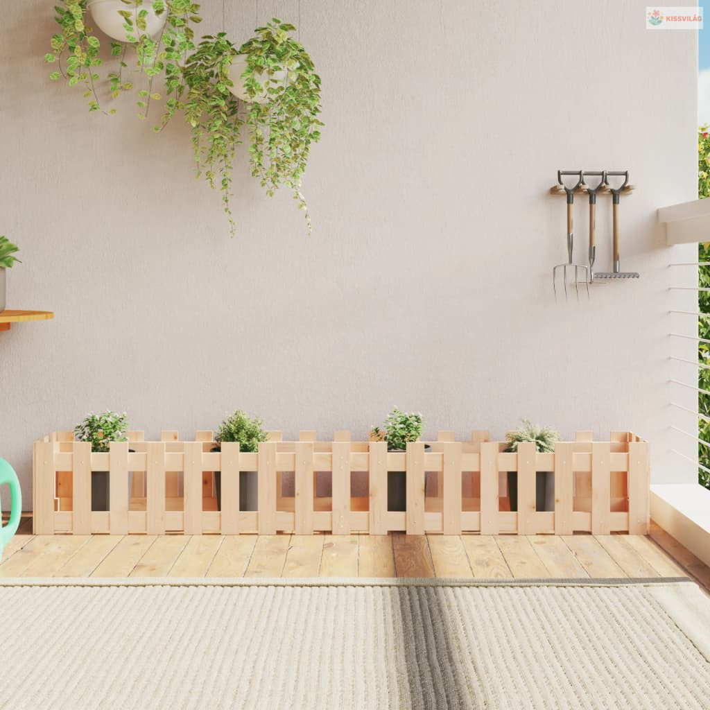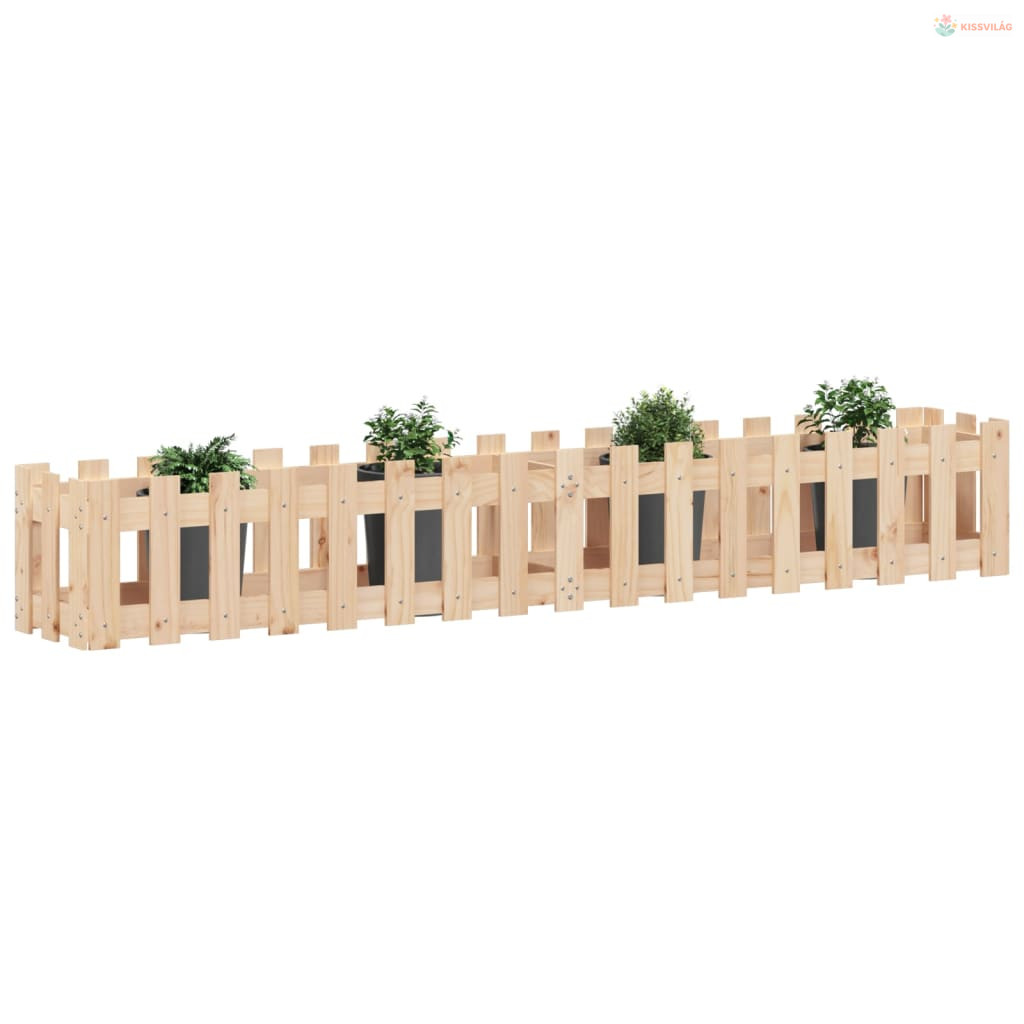 Tömör fenyőfa kerti magaságyás kerítéssel 200x30x30 cm