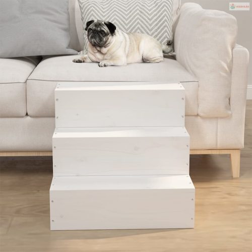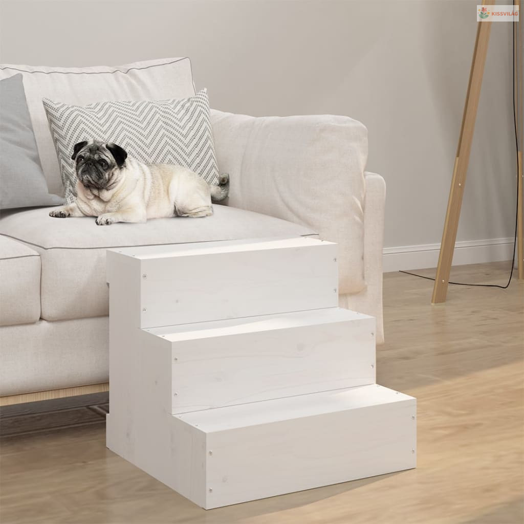 Tömör fenyőfa kisállat lépcső fehér 40 x 37,5 x 35 cm