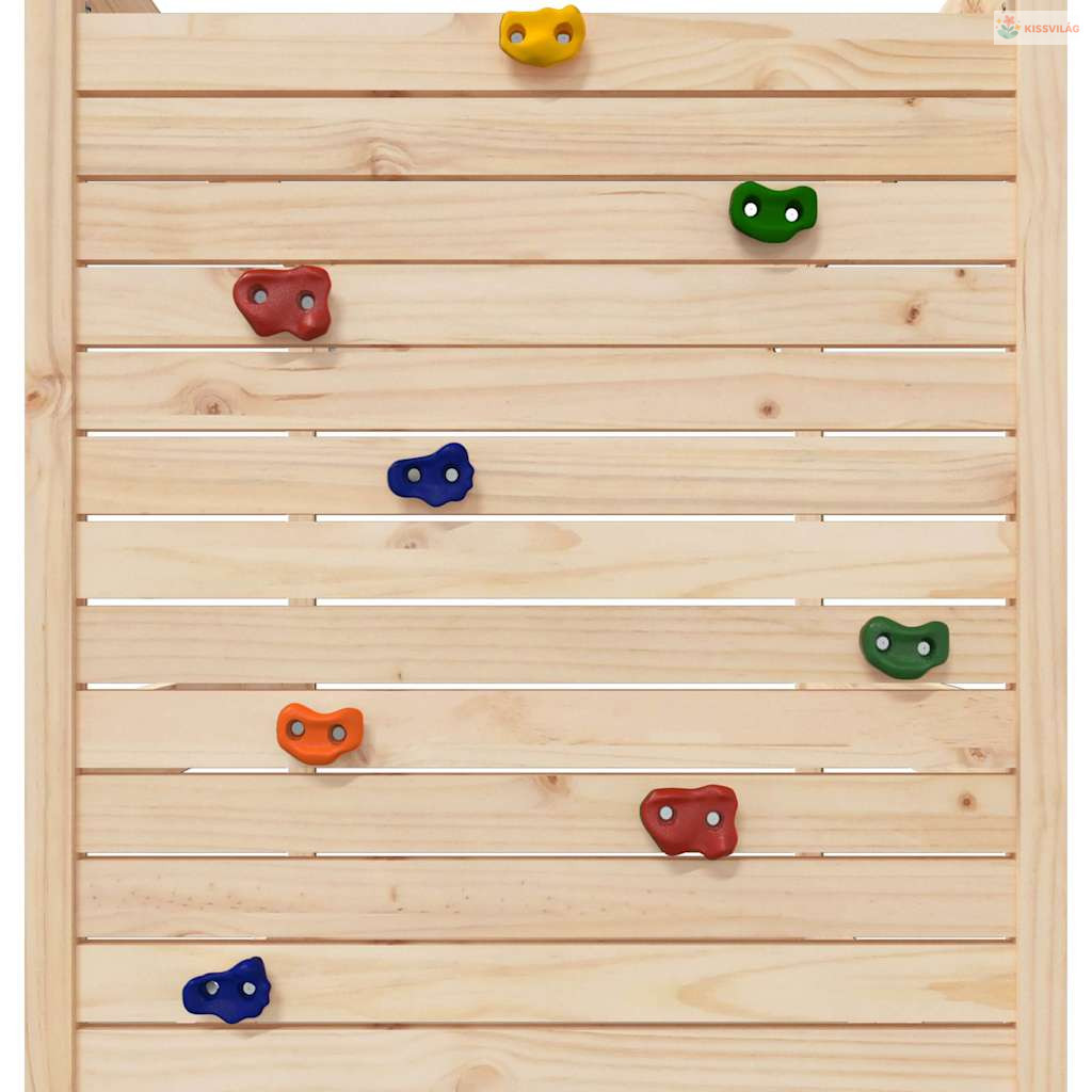 • Tömör fenyőfa: Ez a kerti mászóka tömör fenyőfából készült. A tömör fenyőfa egy gyönyörű, természetes anyag. A fenyőfa egyenes erezetű, a csomók pedig jellegzetes, rusztikus megjelenést biztosítanak az anyagnak.
