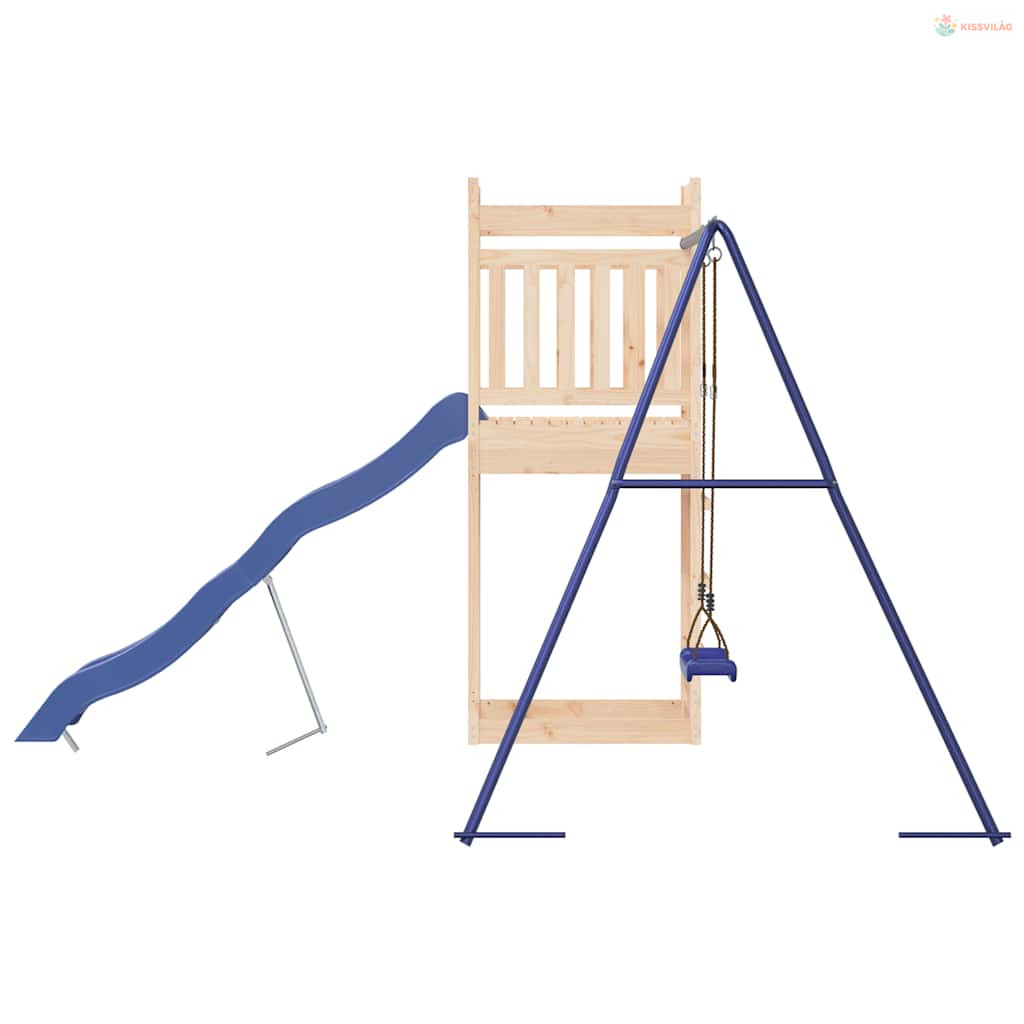 • Multi-aktivitási központ: A fa játszószett 118 cm magas emelvénnyel, valamint hullámos csúszdával, hintaszettel és homokozóval rendelkezik. A kicsik barátaikat is meghívhatják játszani.