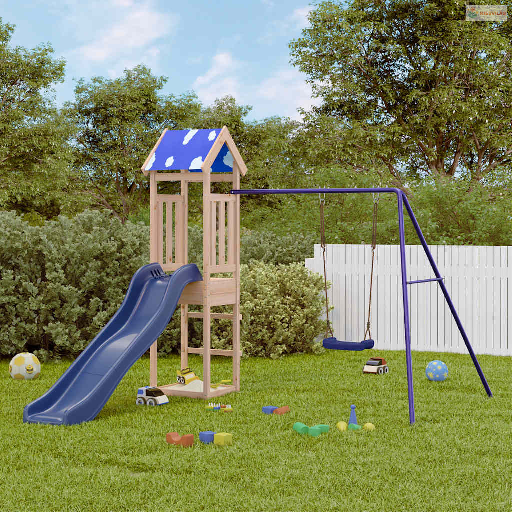 Tömör fenyőfa kültéri játszószett