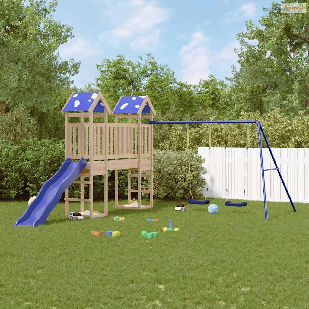 Szeretné, ha gyermekei szabadon játszhatnának otthon? Ez a fából készült játszószett varázslatos kalandok játszóterévé varázsolja kertjét!