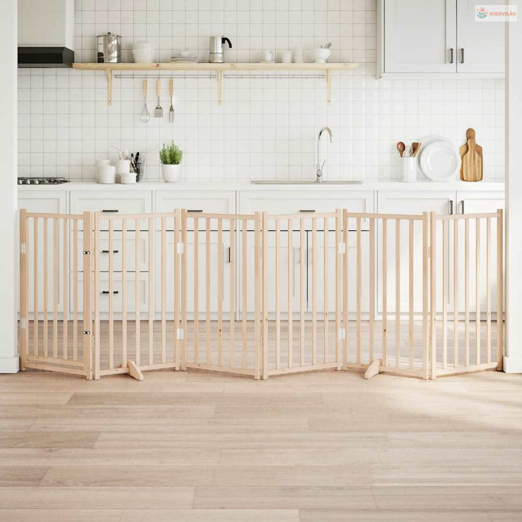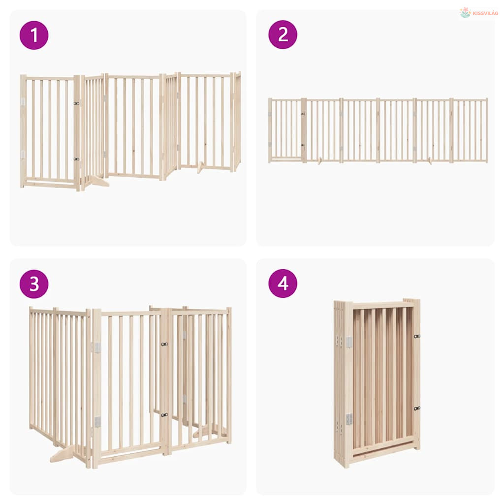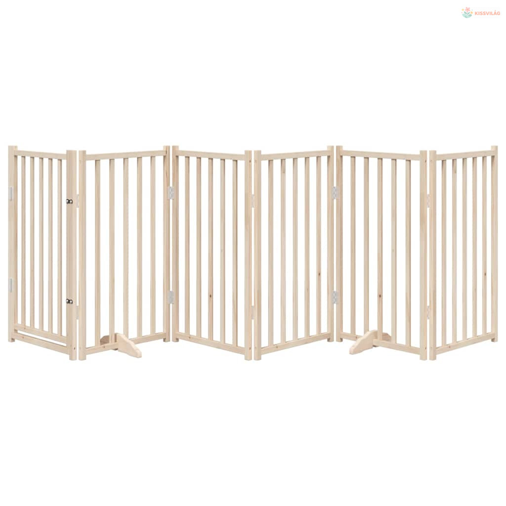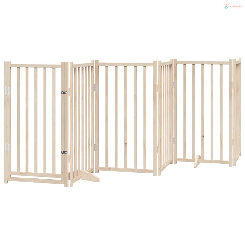 Tömör fenyőfa kutyakapu összecsukható ajtóval, 6 panel, 300 cm