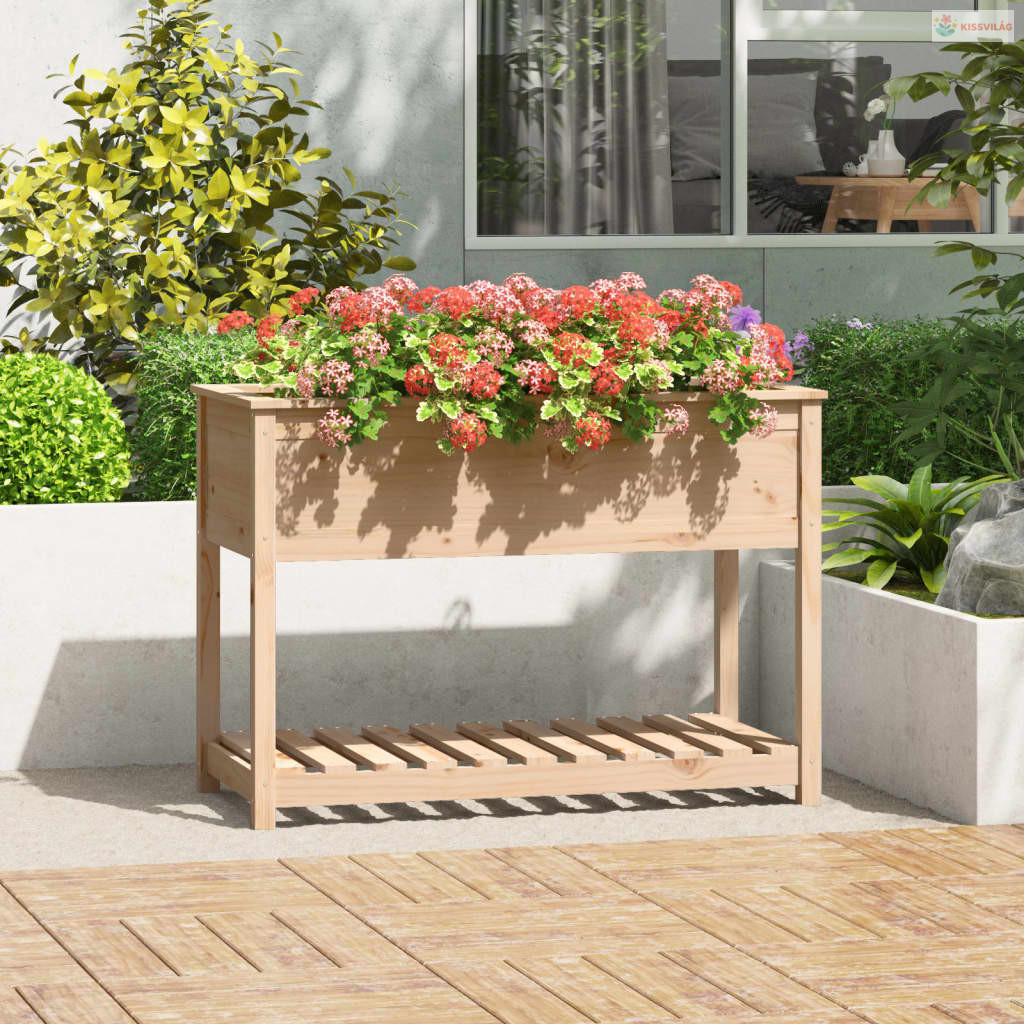 Tömör fenyőfa növénytartó polccal 111,5x54x81 cm