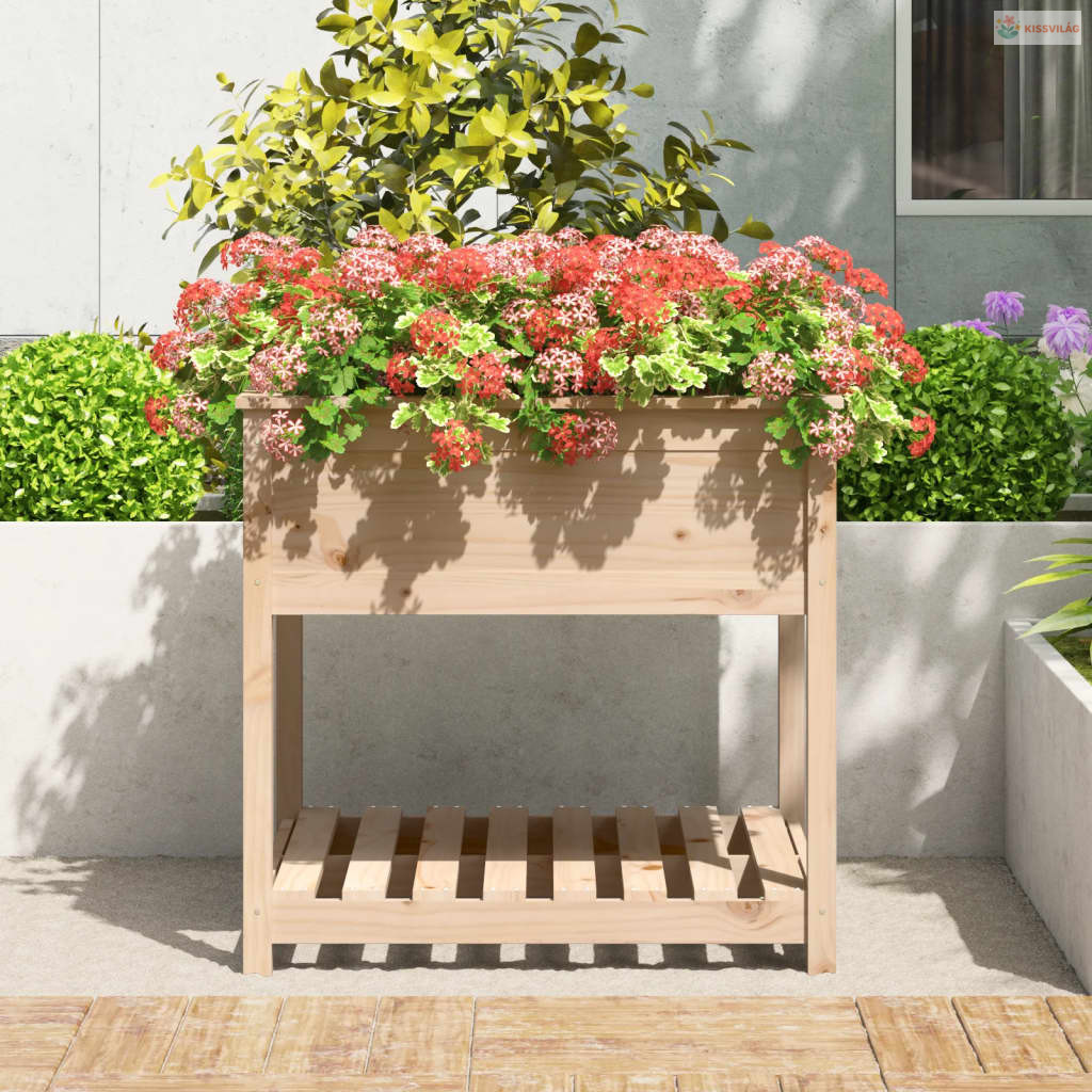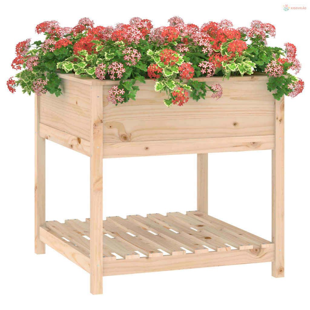 Tömör fenyőfa növénytartó polccal 82,5x82,5x81 cm