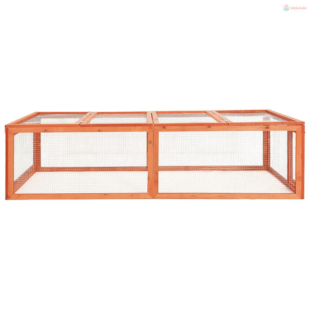 A kültéri nyúlketrec tömör fenyőfa vázzal és acélhuzal ráccsal rendelkezik, és gyorsan és egyszerűen felállítható a kertben. Rengeteg friss levegőt és napfényt biztosít, így nagyon közel áll a természetes életmódhoz. A ház teteje négy elemből áll, míg a bal és jobb oldali elemek nyithatóak, így kényelmesen be tud nyúlni. Ez azt is megakadályozza, hogy a nyulak kiugorjanak, és védelmet nyújt a ragadozók ellen is. A kisállatketrec elegendő mozgásszabadságot biztosít az állatok jóléte érdekében.