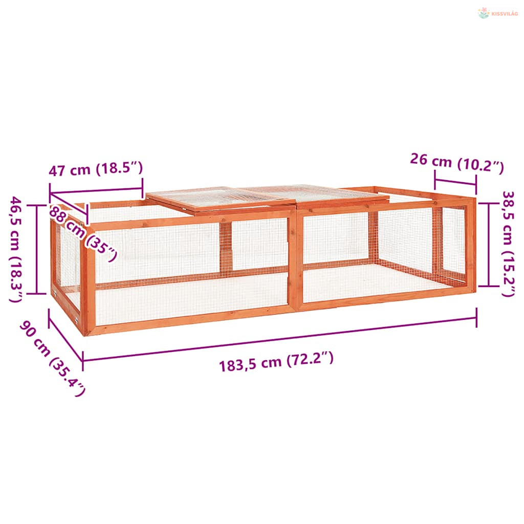 Tömör fenyőfa nyúlketrec 183 x 90 x 46,5 cm
