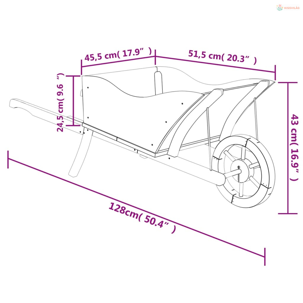 Tömör fenyőfa talicska növénytartó 128 x 45,5 x 43 cm