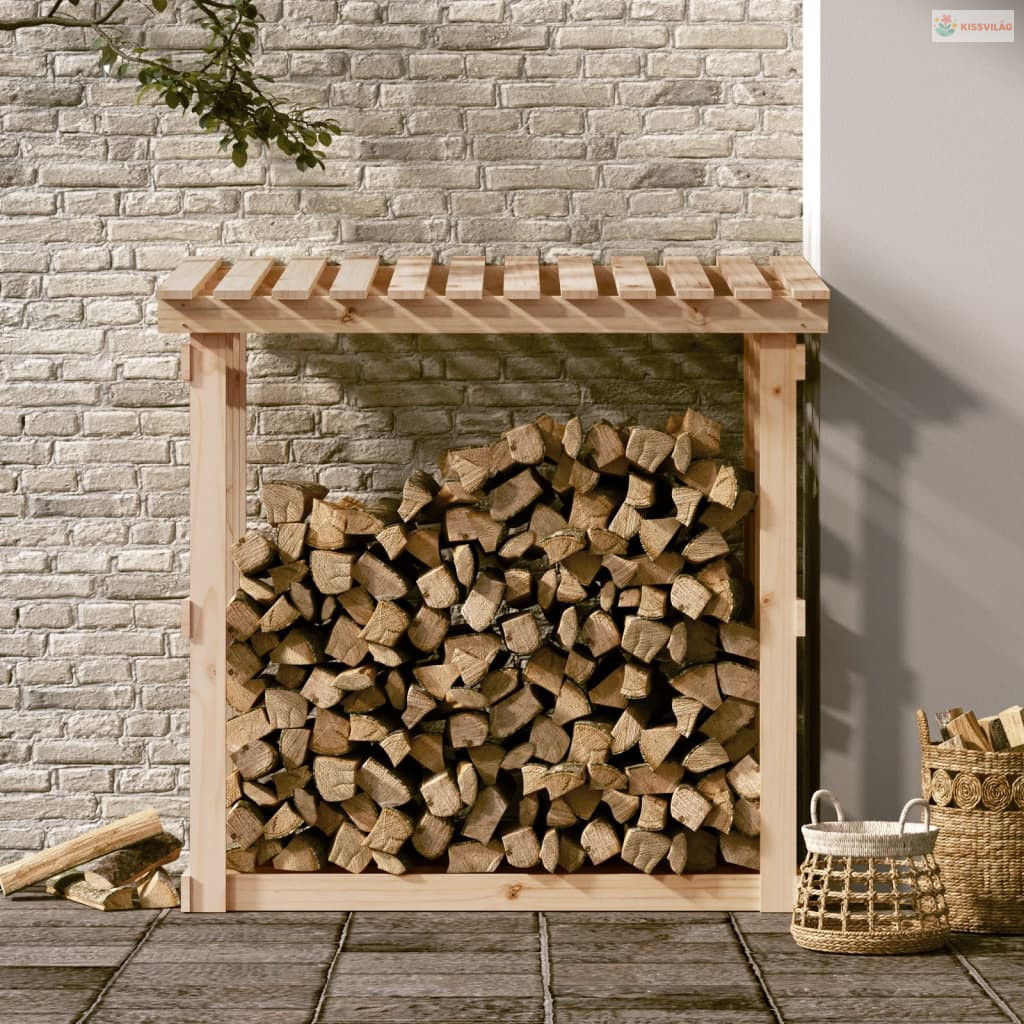 Tömör fenyőfa tűzifatartó állvány 108 x 64,5 x 109 cm