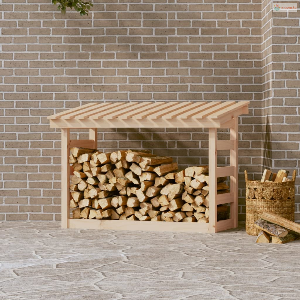 Tömör fenyőfa tűzifatartó állvány 108x64,5x78 cm
