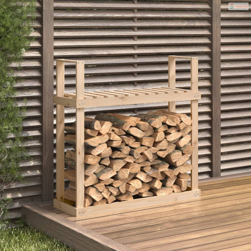 Tömör fenyőfa tűzifatartó állvány 110x35x108,5 cm