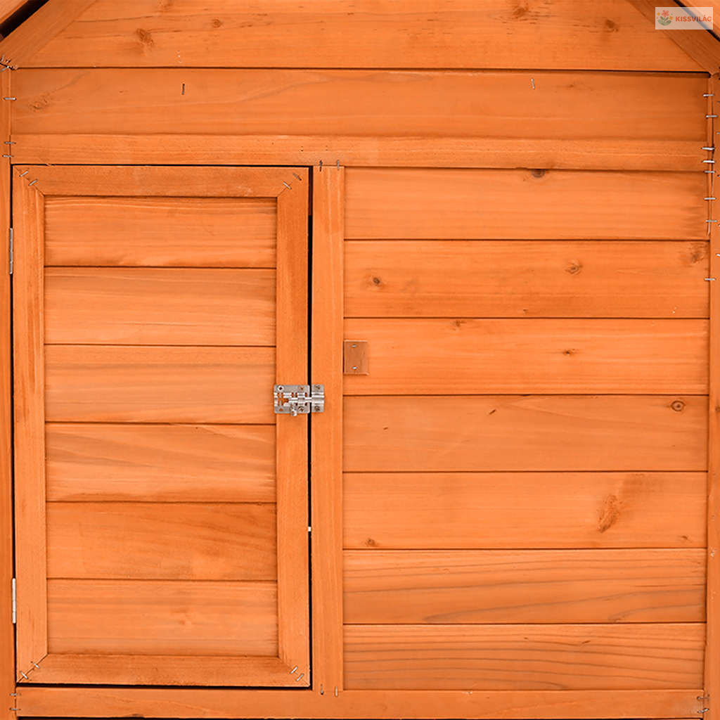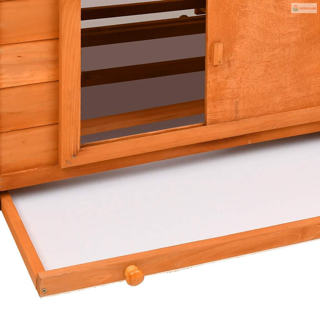 Kiváló tömör fenyőfából készült, így a ketrec tartós és stabil. A vízálló anyag a tetőn nem engedi át az esőt, kellemes hőmérsékletet tart, így válik a tyúkól kényelmessé az állatok számára.