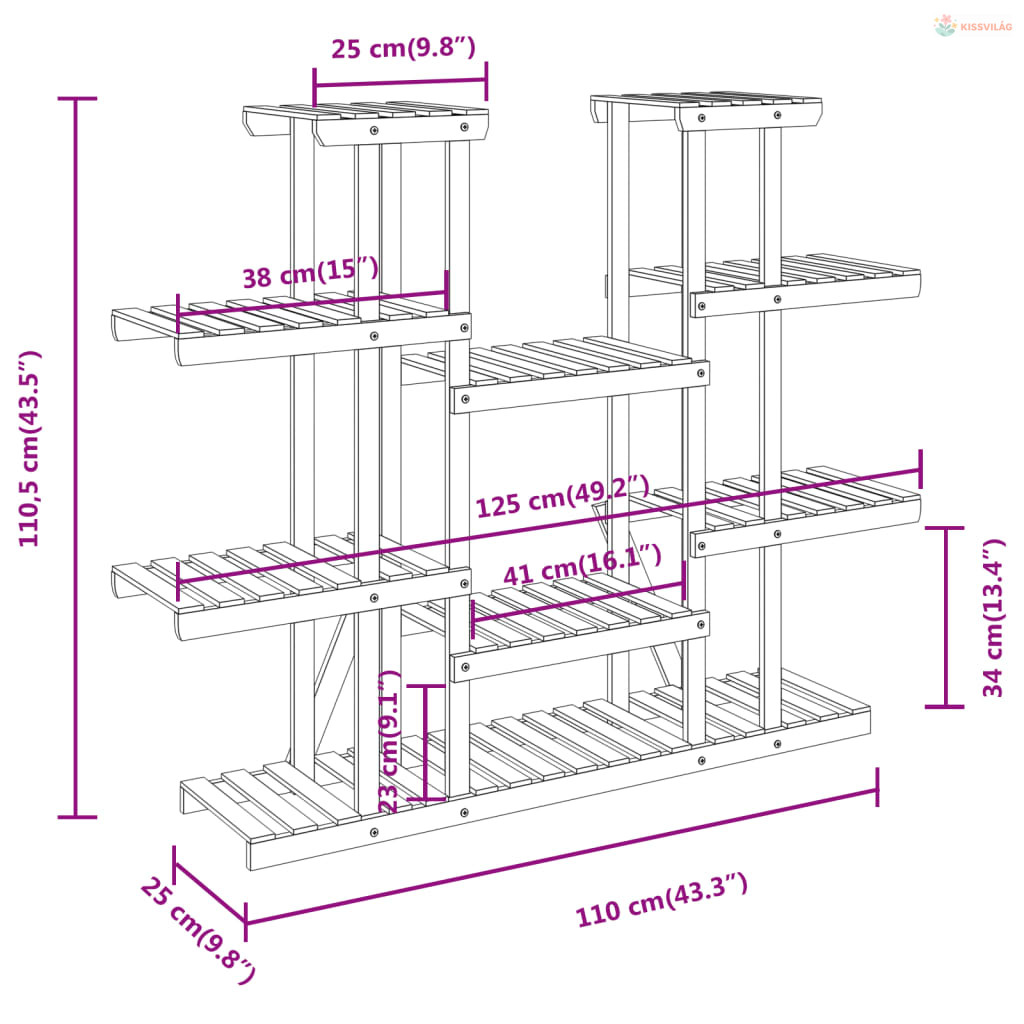 Tömör fenyőfa virágtartó állvány 110 x 25 x 110,5 cm