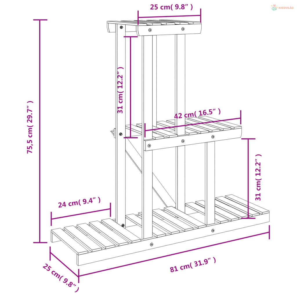 Tömör fenyőfa virágtartó állvány 81 x 25 x 75,5 cm