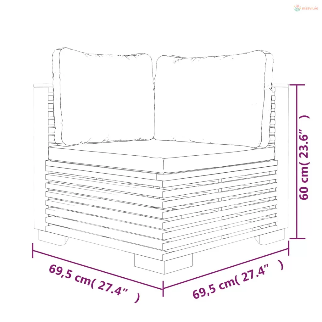 Tömör tíkfa kerti sarokkanapé krémszínű párnákkal
