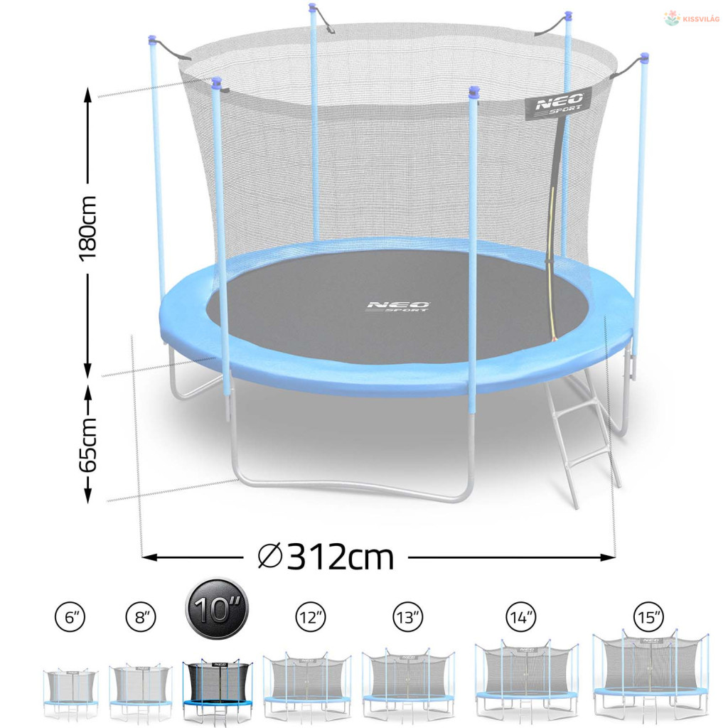 Ez a Kerti trambulin 10FT/312 cm belső védőhálóval és létrával Neo-Sport szuper választás, ha egy kis aktív kikapcsolódást vinnél a mindennapokba. Stabil kialakítása miatt otthoni használatra is jó megoldás.