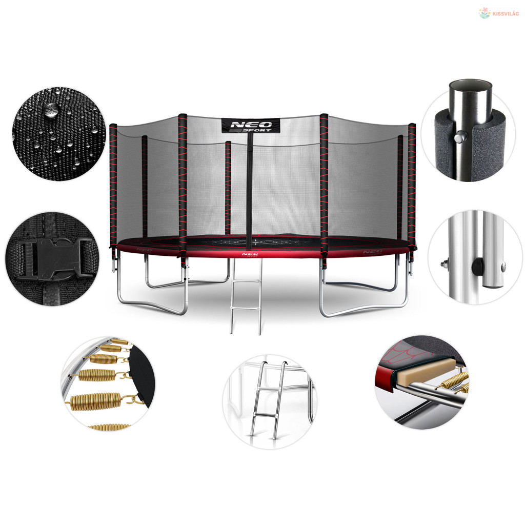 Ez a Kerti trambulin 12FT/374 cm külső védőhálóval és létrával Neo-Sport szuper választás, ha egy kis aktív kikapcsolódást vinnél a mindennapokba. Stabil kialakítása miatt otthoni használatra is jó megoldás.