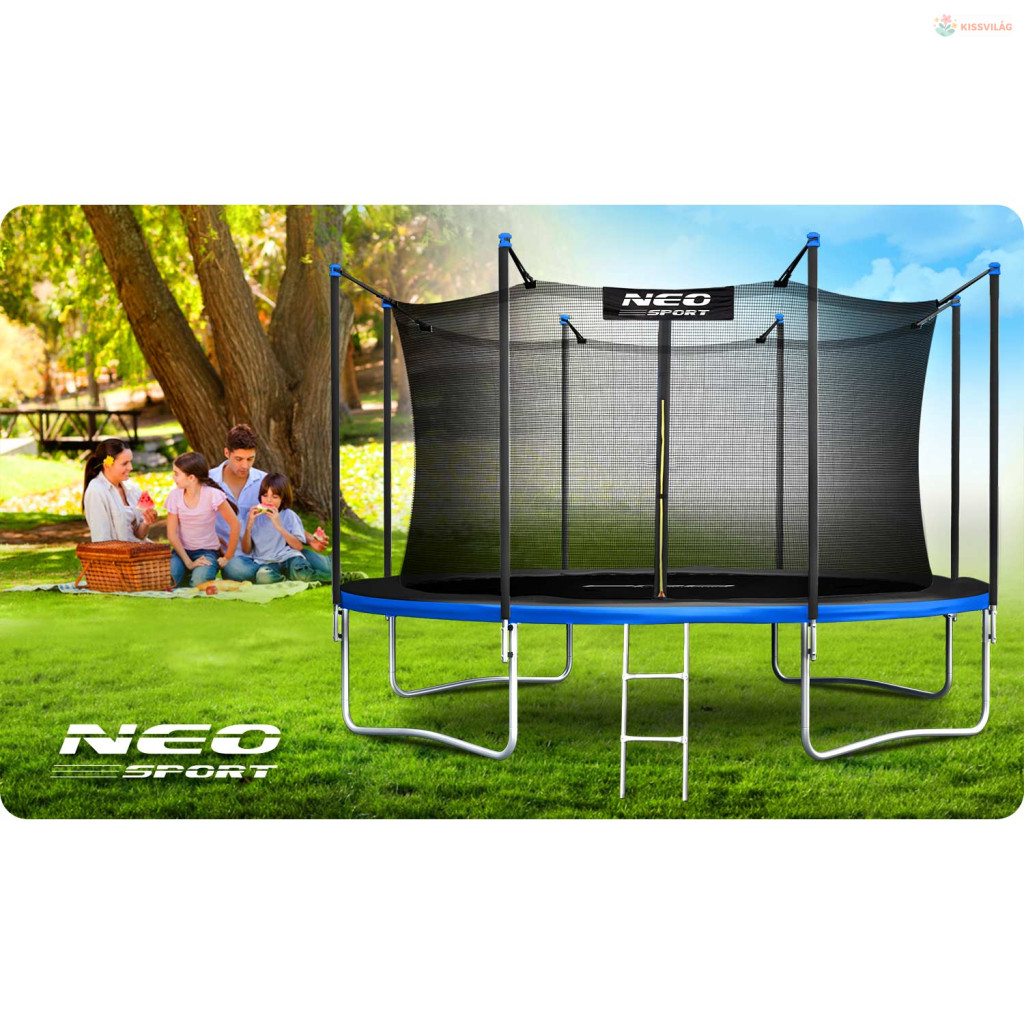 Kerti trambulin 14FT/435 cm belső védőhálóval és létrával Neo-Sport – kék