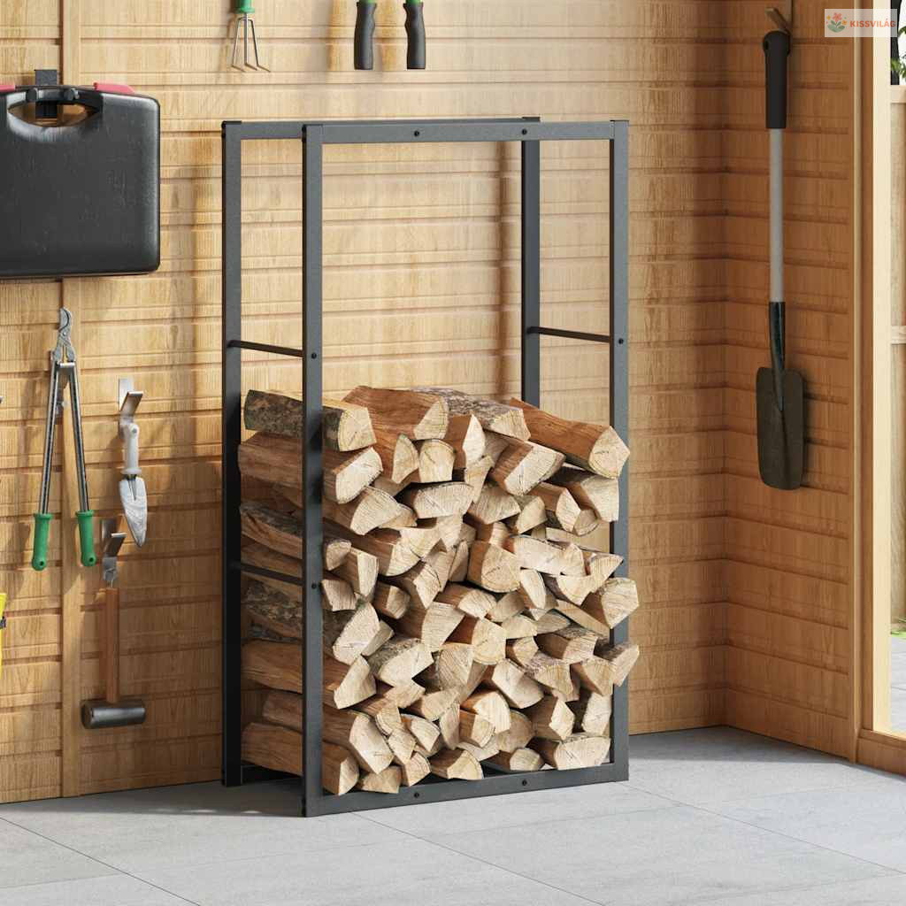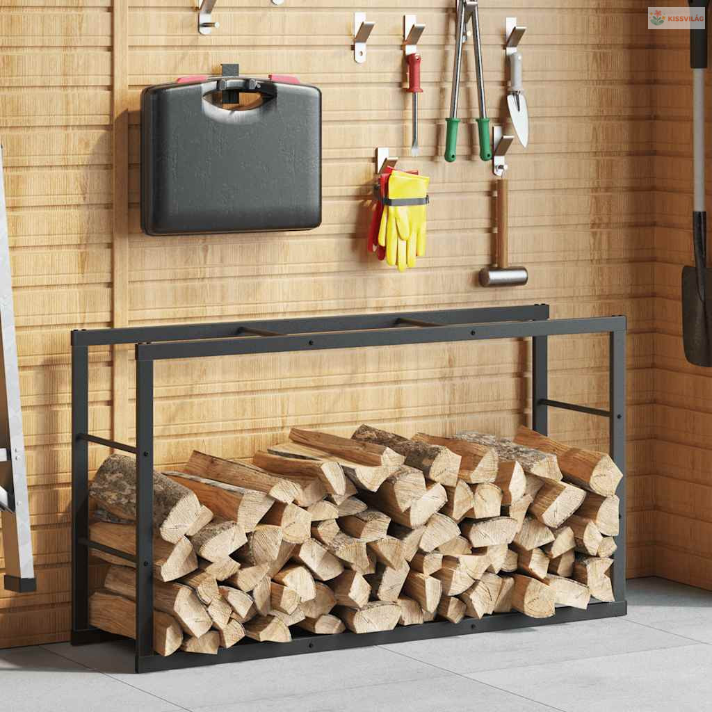 Tűzifa állvány Fekete 110x30x61 cm Acél