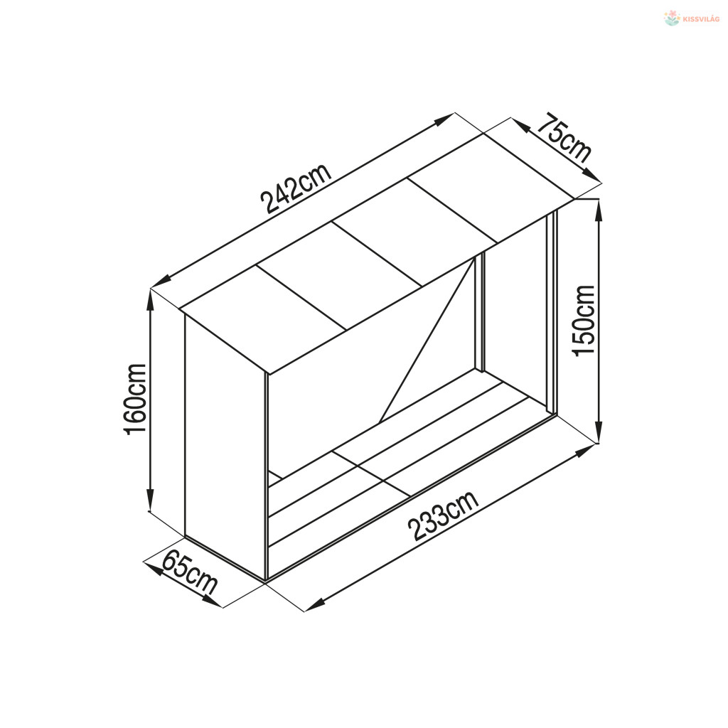 Külső méretek (Sz x Ma x Mé): 242 x 160 x 75 cm