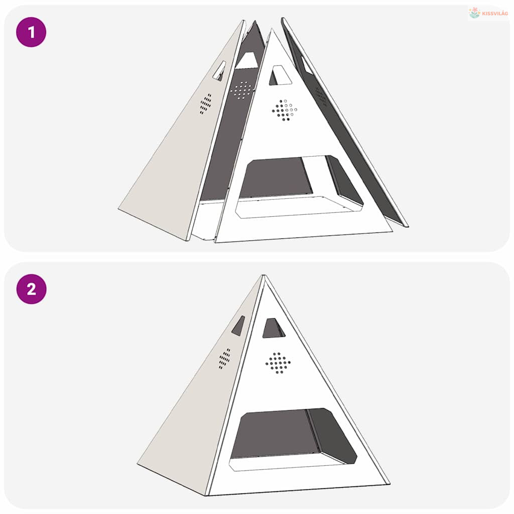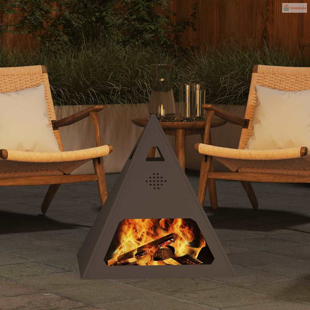• Piramis formájú dizájn: Ezzel a szemet gyönyörködtető piramis alakjával nemcsak eleganciát ad a kültéri helyszíneknek, de a fának is segít, hogy a lehető legjobban égjen. Az innovatív dizájn emeli a látványt, miközben ez a tűzrakó praktikus műalkotásként funkcionál.