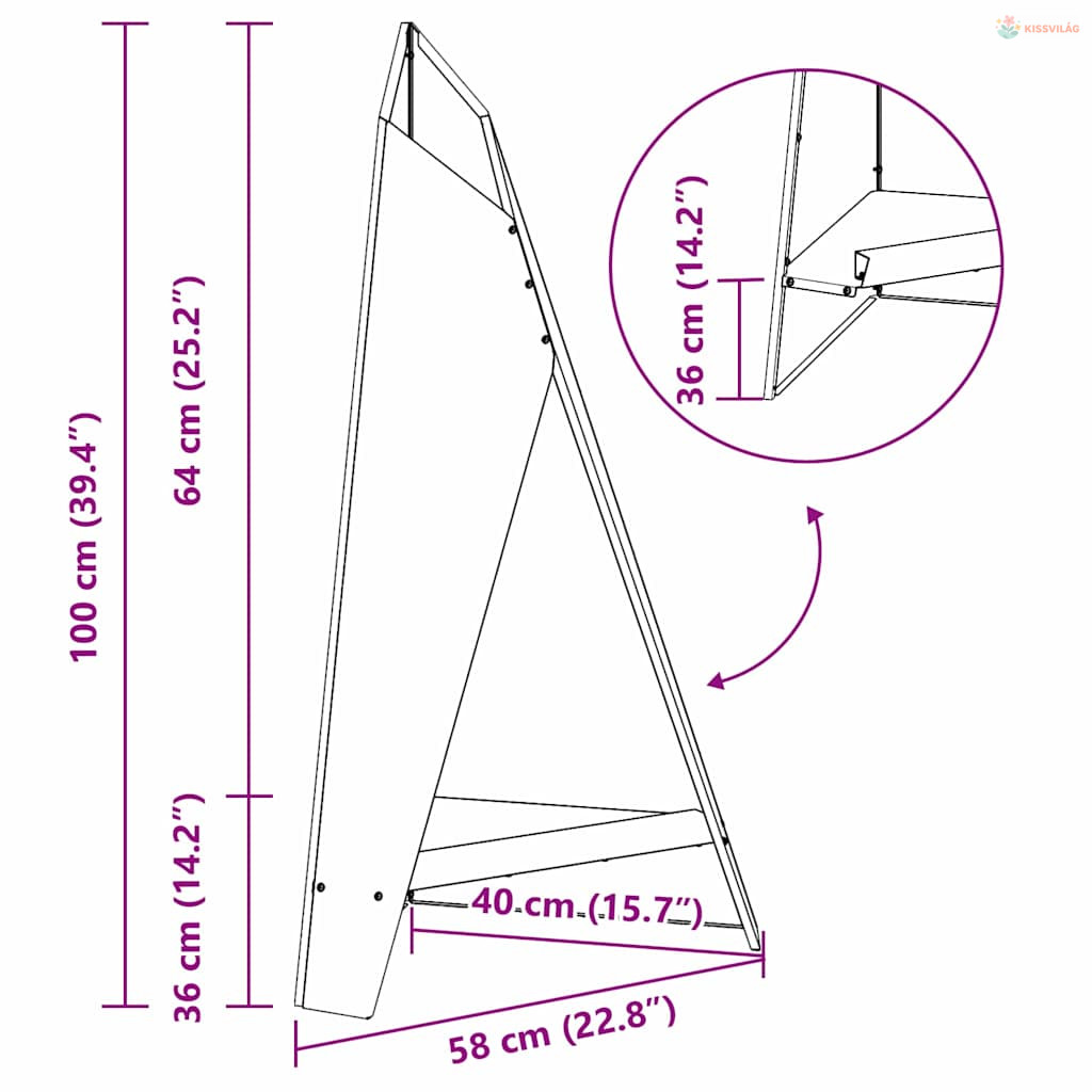 • Általános dimenziók: 58 x 40 x 100 cm (Ho x Szé x Ma)