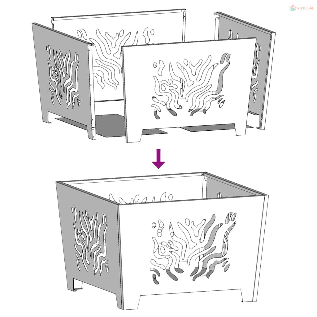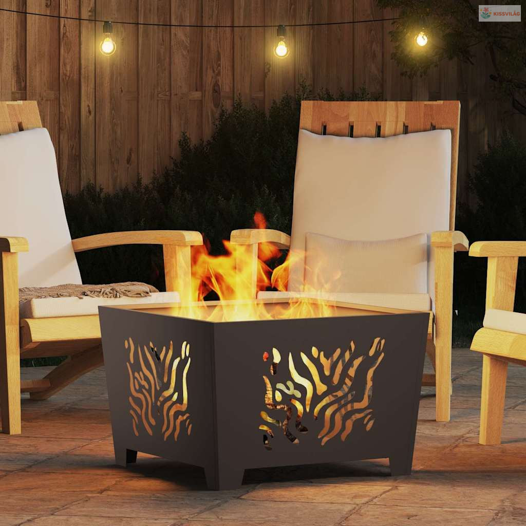 Ez a modern, négyzet alakú tűzrakó barátságos légkört hoz a balkonodra vagy a teraszodra. Hőálló acélból készült, dizájnja ötvözi a praktikusságot a kortárs stílussal, így remek választás a pihenéshez és a melegedéshez.