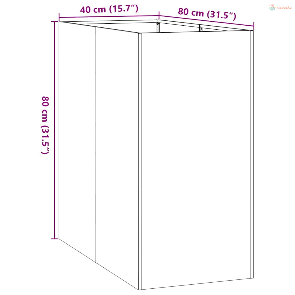 Ültetvény fekete 40x80x80 cm acél