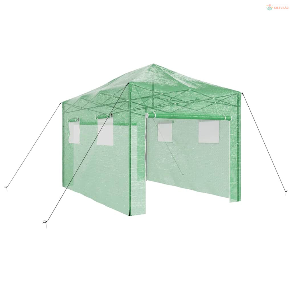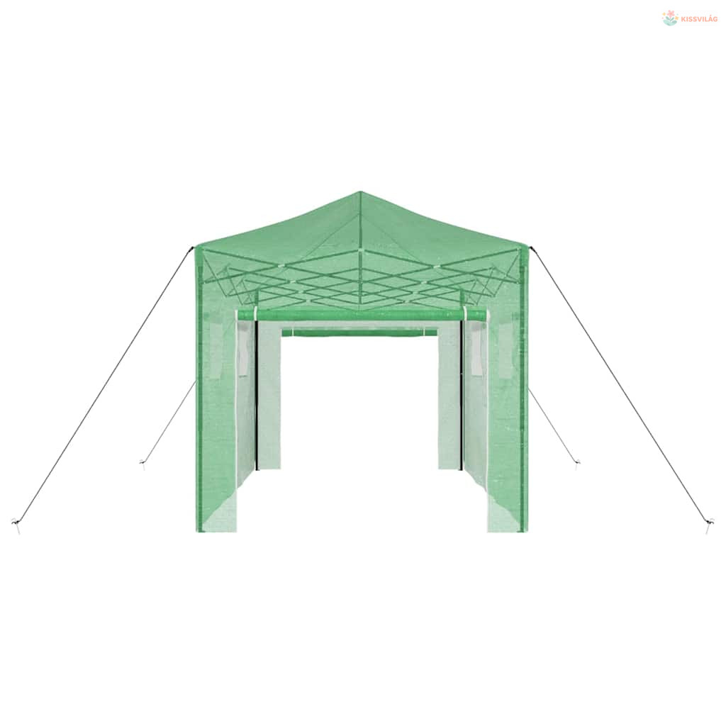 Üvegház pop-up kerettel tetővel Zöld 280 x 410 x 315 cm Vas