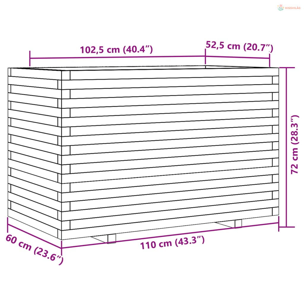 Viaszbarna tömör fenyőfa kerti virágláda 110x60x72 cm