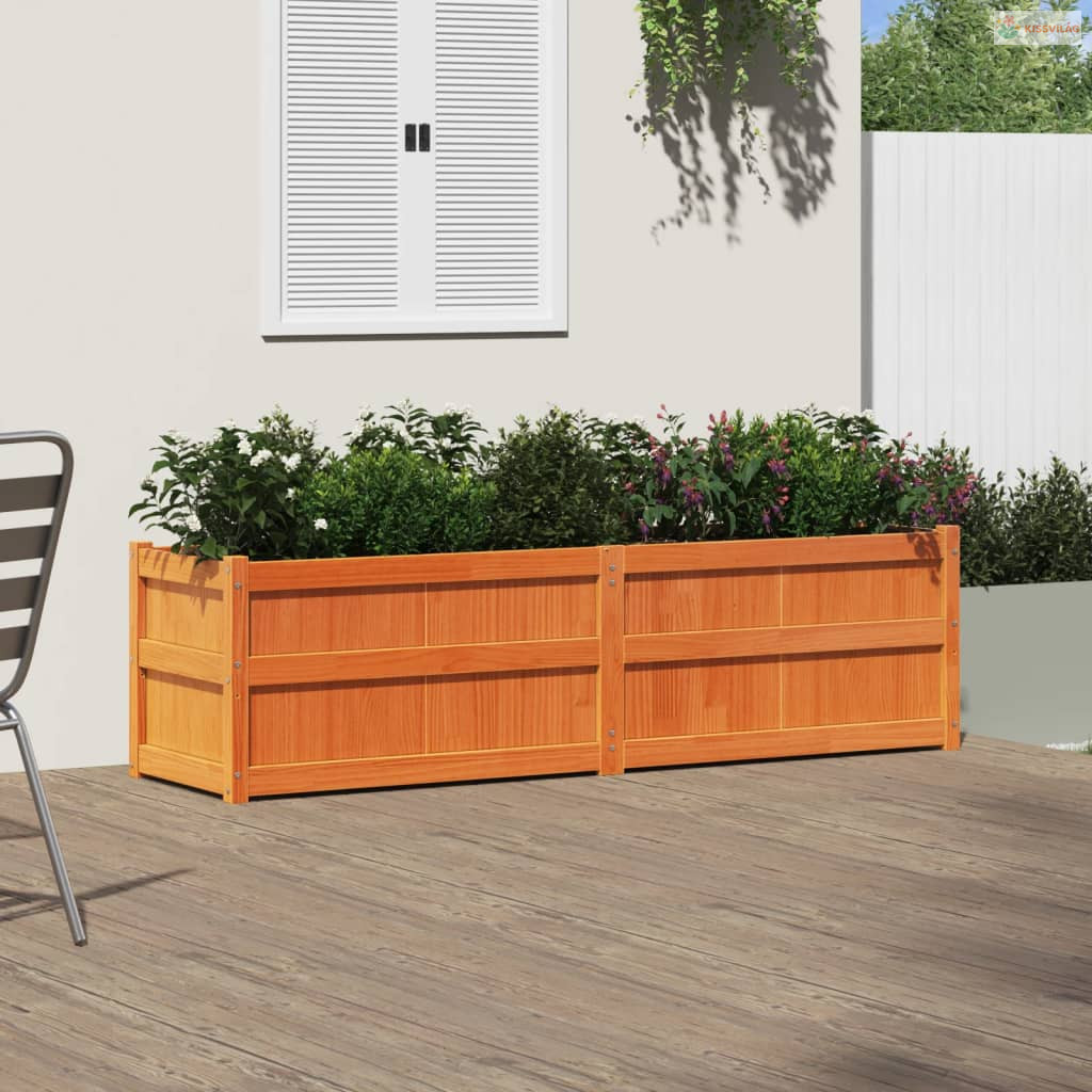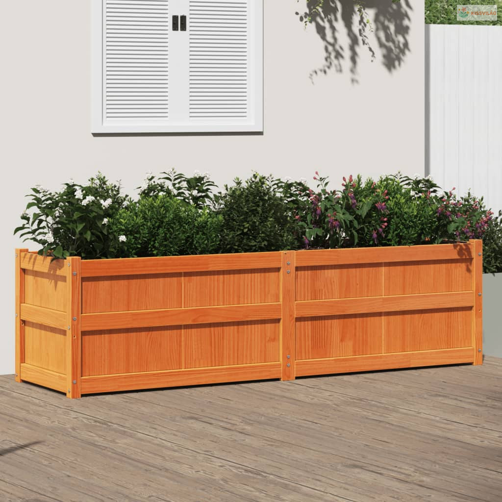 Viaszbarna tömör fenyőfa kerti virágláda 180 x 50 x 50 cm