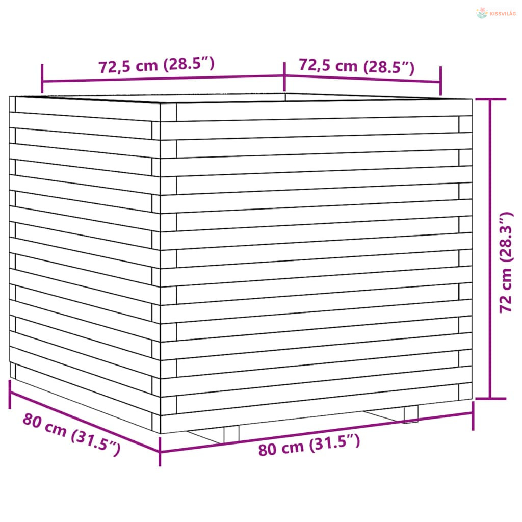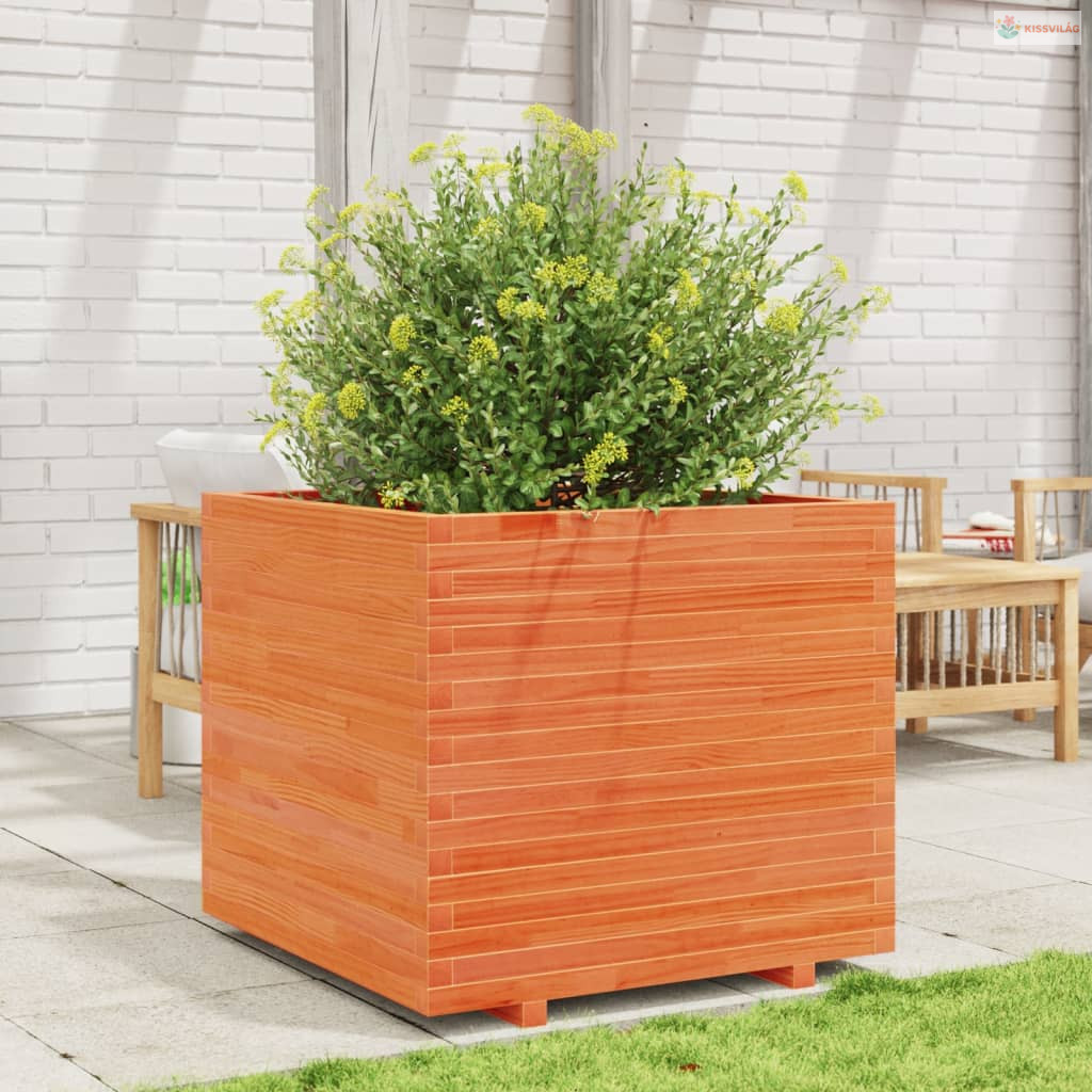 Viaszbarna tömör fenyőfa kerti virágláda 80x80x72 cm